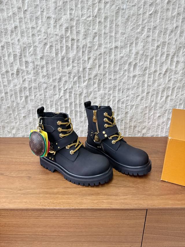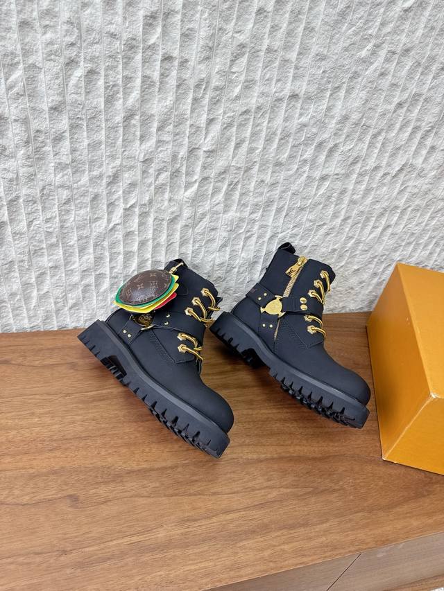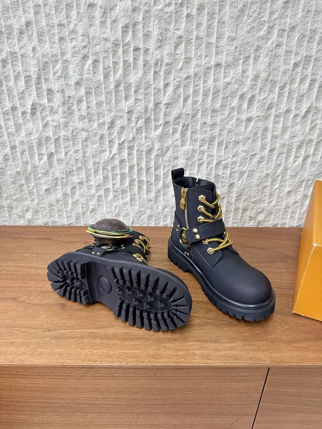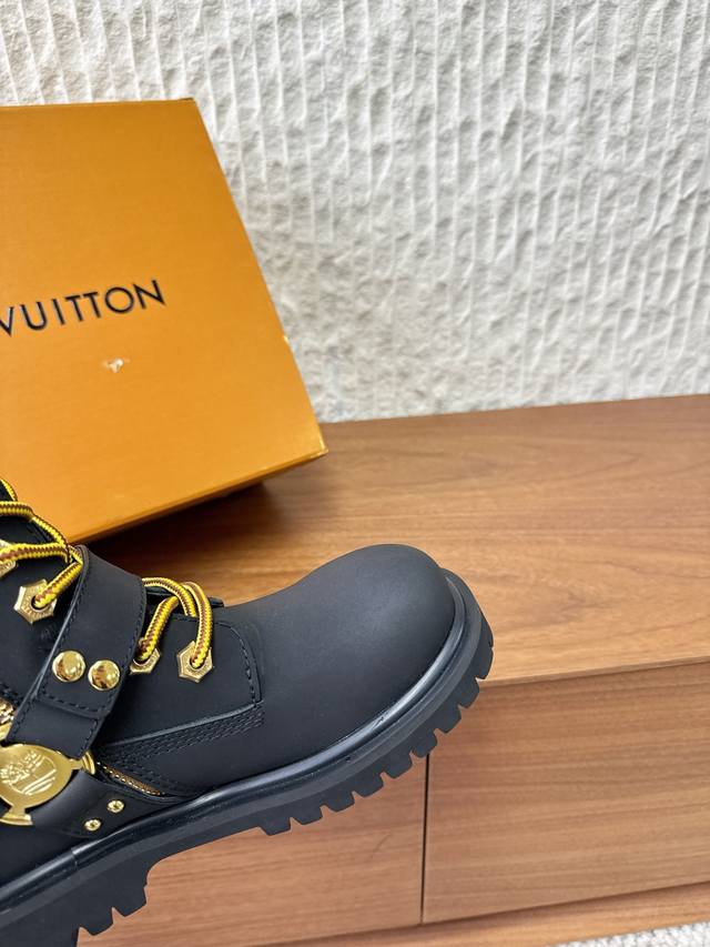 G566 Louis Vuitton X Timberland Collaboration Louis Vuitton 25Ss Fall/Winter New Lace-up Motorcycle Boots