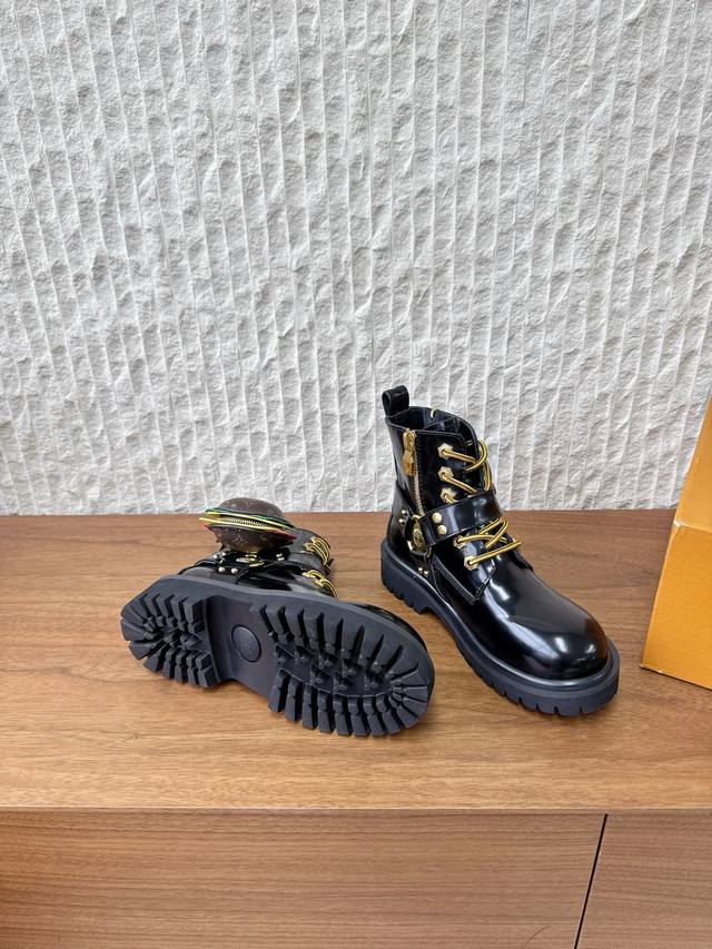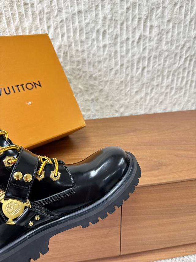G566 Louis Vuitton X Timberland Collaboration Louis Vuitton 25Ss Fall/Winter New Lace-up Motorcycle Boots