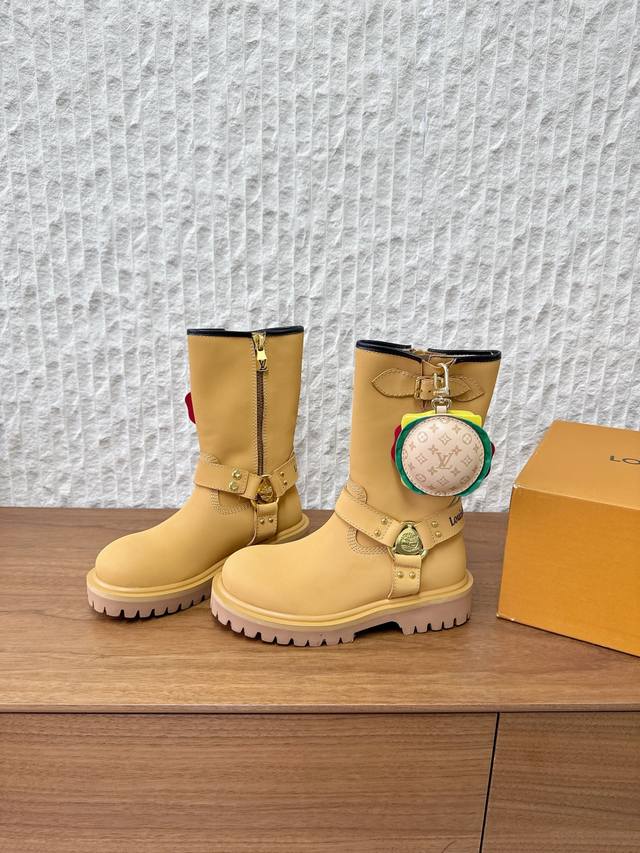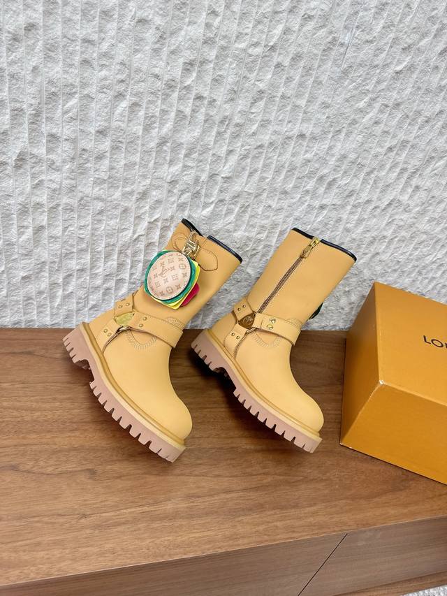 G566 Louis Vuitton X Timberland Collaboration Louis Vuitton 25Ss Fall/Winter New Lace-up Motorcycle Boots