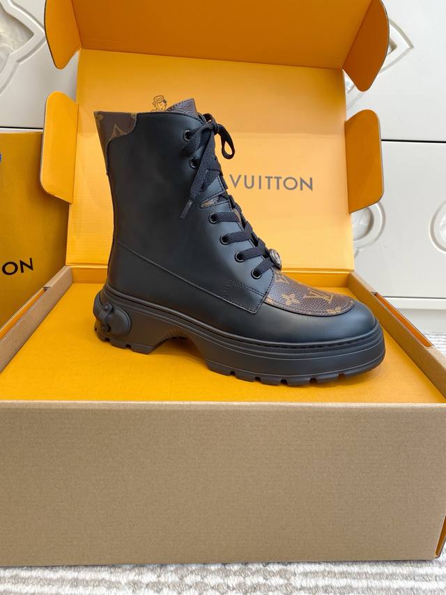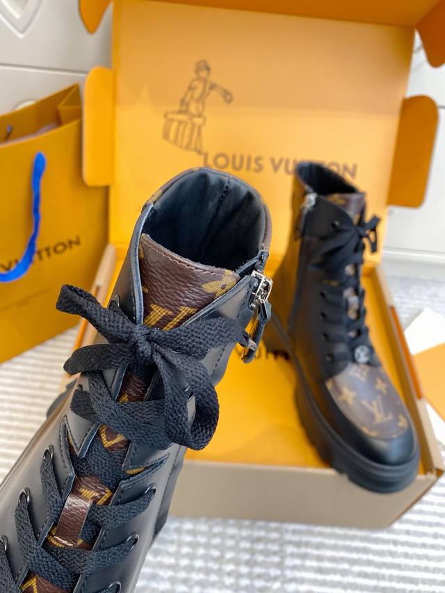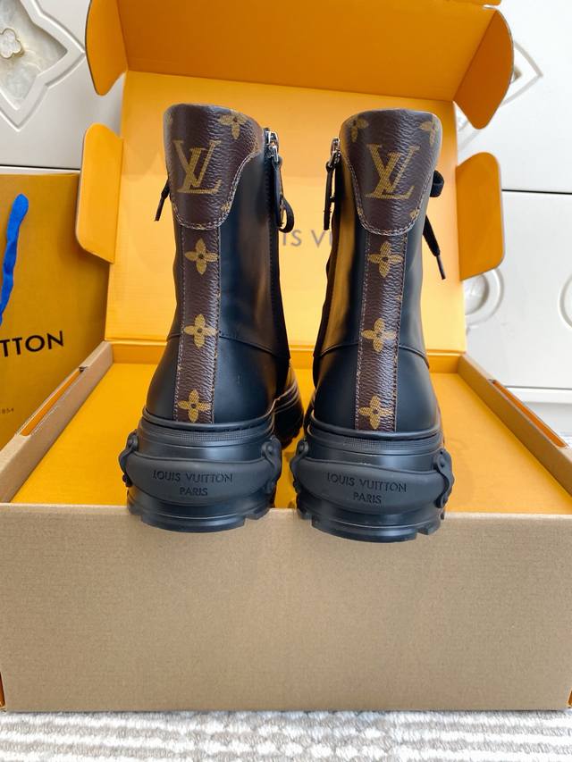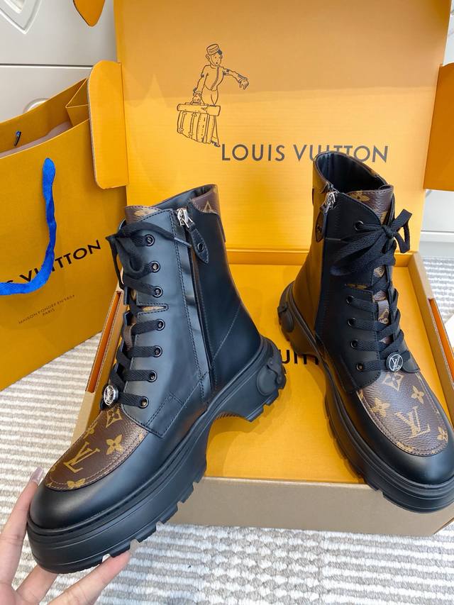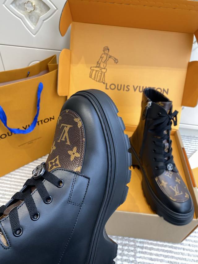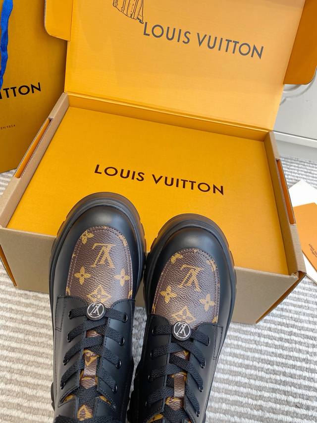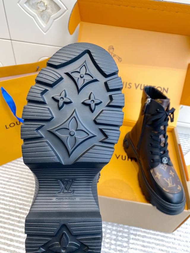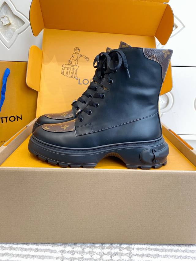 Original Box Packaging DDD Louis Vuitto*New Leather Chelsea Boots, Lv Lace-up Dr. Martens Boots, Ankle Boots DDD Includes both Chelsea boots and lace-up Dr. Martens boots, both featuring a platform design. They combine the simplicity and neatness of Chelsea boots with the cool casualness of Dr. Martens boots, incorporating classic brand elements for high recognizability. DDD Made of high-quality leather, soft to the touch yet resilient, the boot shaft conforms to the leg shape and is not easily deformed. The platform sole uses wear-resistant rubber, balancing height increase and walking stability. The platform design increases height while providing cushioning. The elastic sides of the Chelsea boots make them easy to put on and take off, and the lace-up style is adjustable to fit different foot shapes, suitable for daily commutes or casual occasions. DDD Upper: Calfskin DDD Lining: Cow Lining DDD Outsole: Ip Foam Sole DDD Height Increase: 5cm DDD Size: 35-39, Sizes 40 and 41 are custom-made and non-refundable DDD