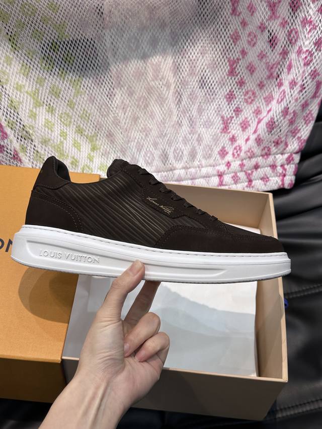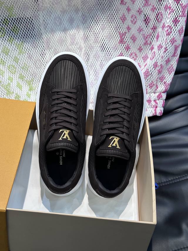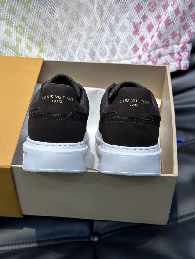Ouis *Uitto* Men's Classic Casual Sneakers. These sneakers feature a supple cowhide leather upper adorned with the classic Monogram print, creating an elegant look. The thick yet lightweight rubber outsole is accented with the Louis Vuitton logo. A padded insole and technical lining further enhance comfort. The Italian imported sheepskin lining offers premium comfort, and the original outsole is lightweight and durable! Handcrafted, details determine quality!