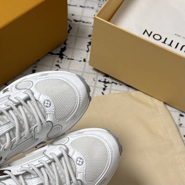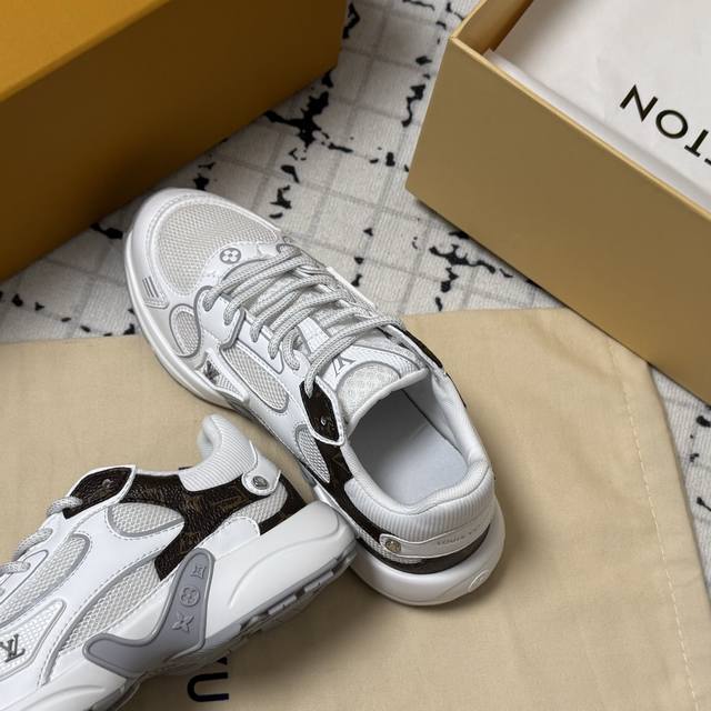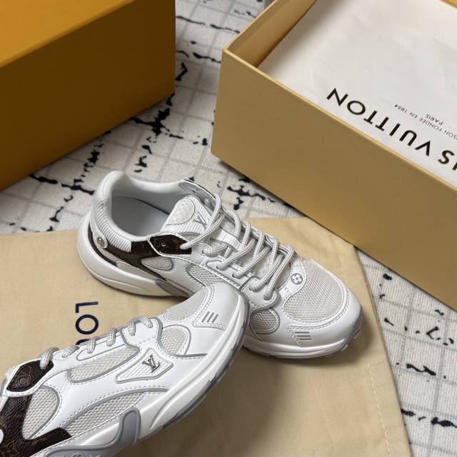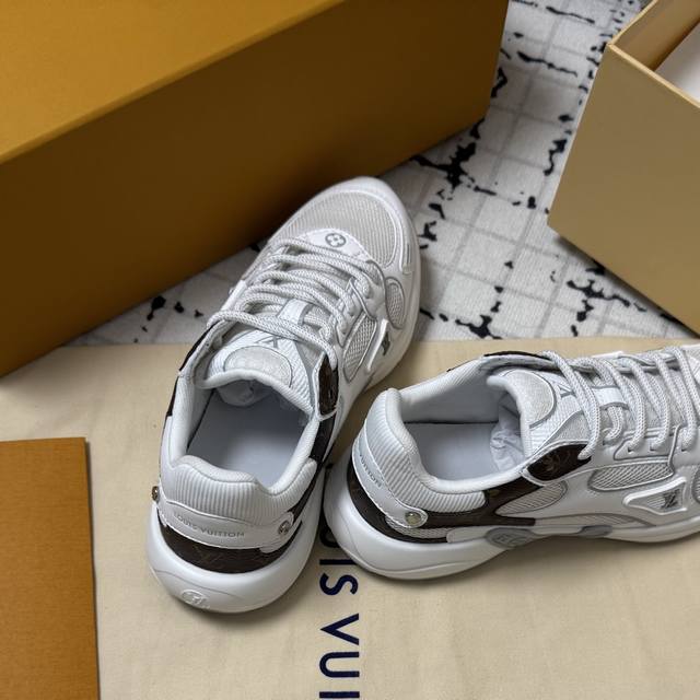 Premium Edition: Couple's Edition. Lv Louis Vuitton's latest Olympia collection, the Silver Horn King casual sneaker, is a couple's edition. This Lv Olympia sneaker combines mesh with metallic synthetic leather, reinterpreting the classic running shoe with a sleek, minimalist design. A lightweight EVOO outsole provides a comfortable and stretchy feel. Intricate details like Monogram embossing and Lv lettering create a distinctive feel. Delivered in exquisite packaging. Fabric: Original imported technical fabric + mesh. Lining: Original custom breathable mesh. Sole: Original molded rubber foam. Sole thickness: 3.5cm. Size: 35-45.