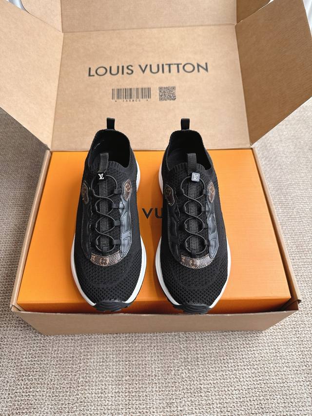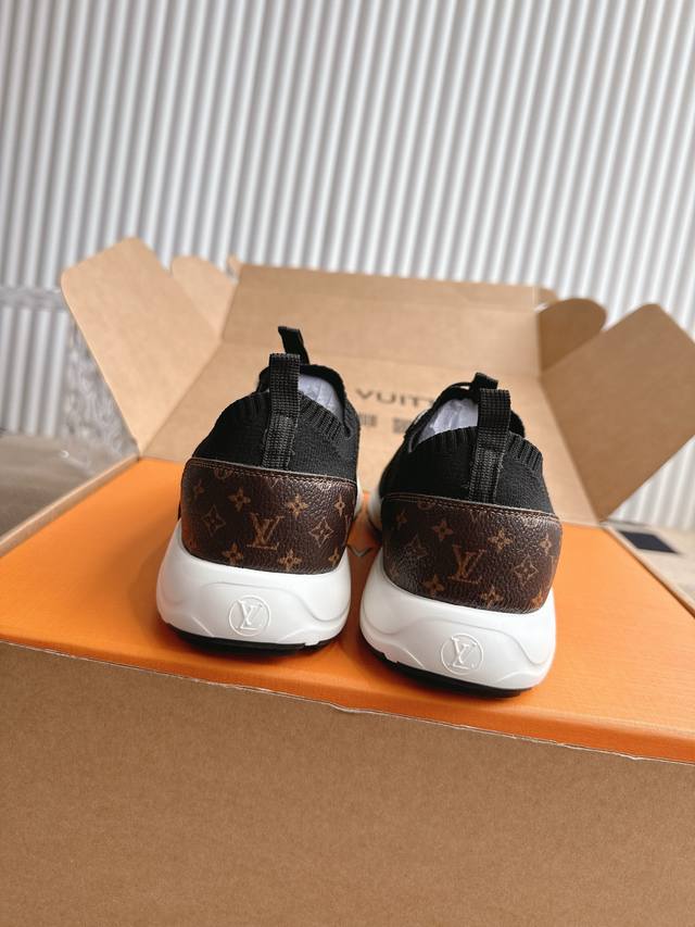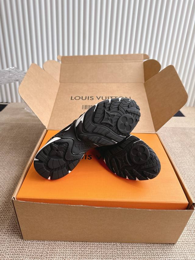 This LV Olympia sneaker combines technical fabrics like mesh and metallic synthetic leather, reinterpreting the classic running shoe with a sleek, minimalist design. A lightweight EVOO outsole provides a comfortable and stretchy feel. Intricate details like Monogram embossing and LV lettering create a distinctive look.