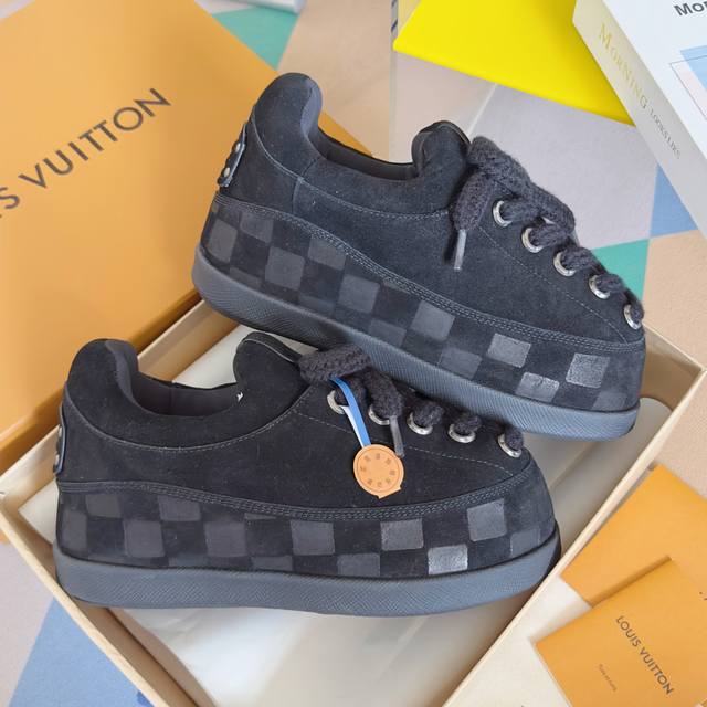 Originally purchased, developed, and crafted. These Lv Yeti lace-up shoes, from the Lv Yeti collection, blend avant-garde Japanese "bound-foot" fashion aesthetic with classic Louis Vuitton elements, subtly nodding to the traditional Japanese practice of removing shoes indoors. Suede leather is partially embossed with Nigo's reinterpreted Damier pattern, and the comfortable slip-on silhouette exudes streetwear flair.