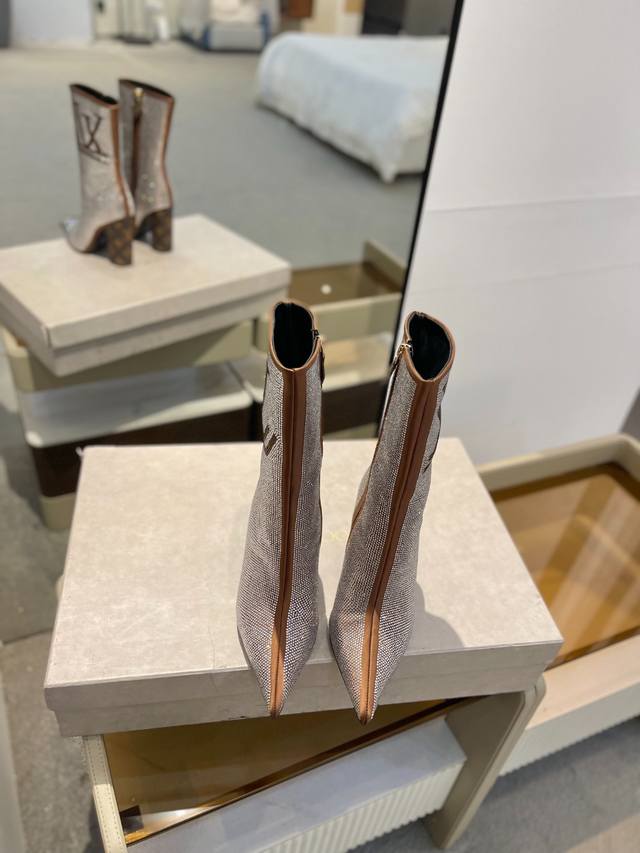 Price: Latest ankle boots, exclusive new top-quality version from Paris, super beautiful. Original mold, original buckle, original logo included. Super gorgeous! High- end and classy at first glance , making you swoon. Material: Outsole: Italian genuine leather; Heel height: 10cm; Colors: 3; Lining: Sheepskin lining; Upper: Rhinestones; Sizes: 35-42 {Sizes 41 and 42 are non-refundable}