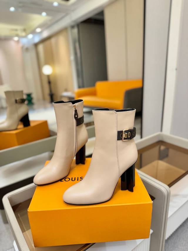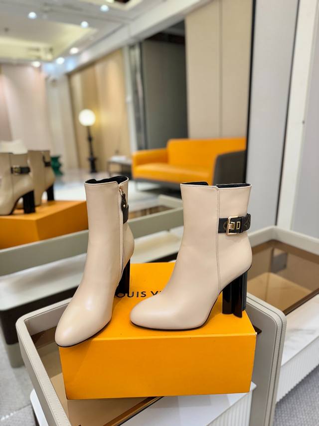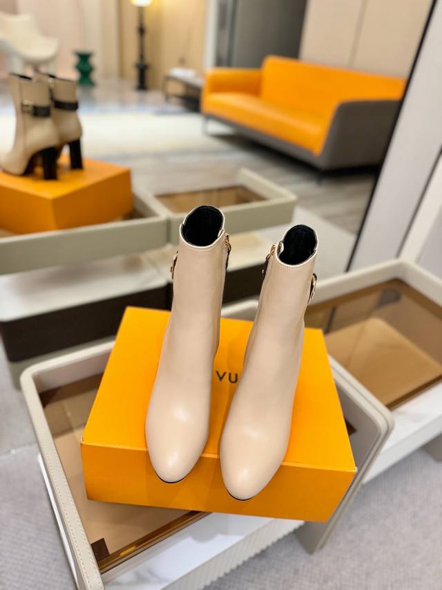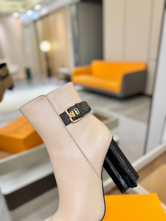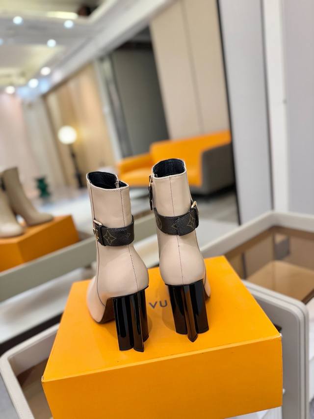 Price: LV Fall/Winter runway style ankle boots, updated simultaneously with the official website series, perfect last + LV's new element buckle design, full of femininity and noble temperament, original molded last, perfect 1:1 shape, high-end quality, imported high-end fabric presents exquisite texture! Material: Calfskin with monogram print Lining: High-quality soft sheepskin lining Insole: Imported goatskin Custom-made A-grade high-density private mold sole, luxurious packaging! Heel height: 10cm Sizes: 35-41 Sizes 40 and 41 are custom-made and non-refundable.
