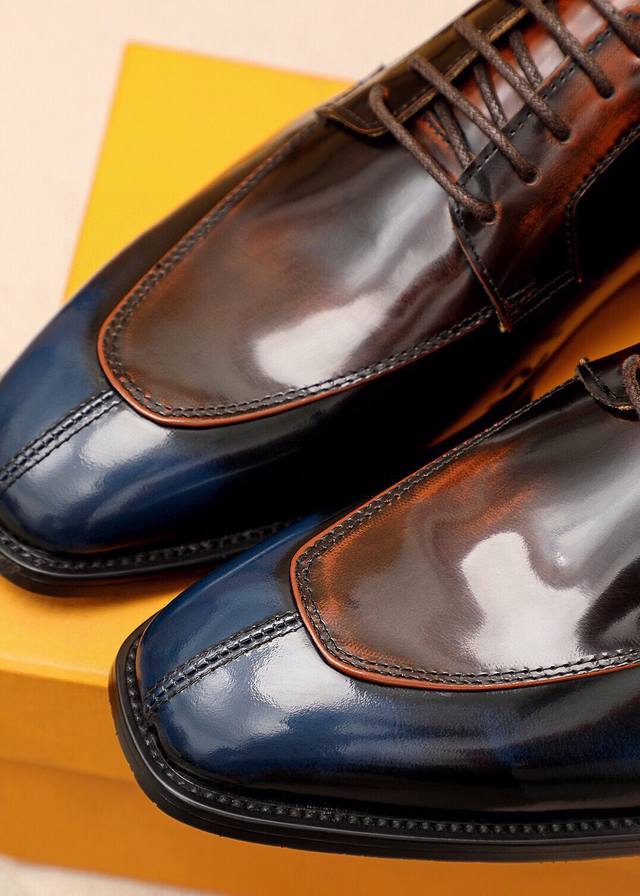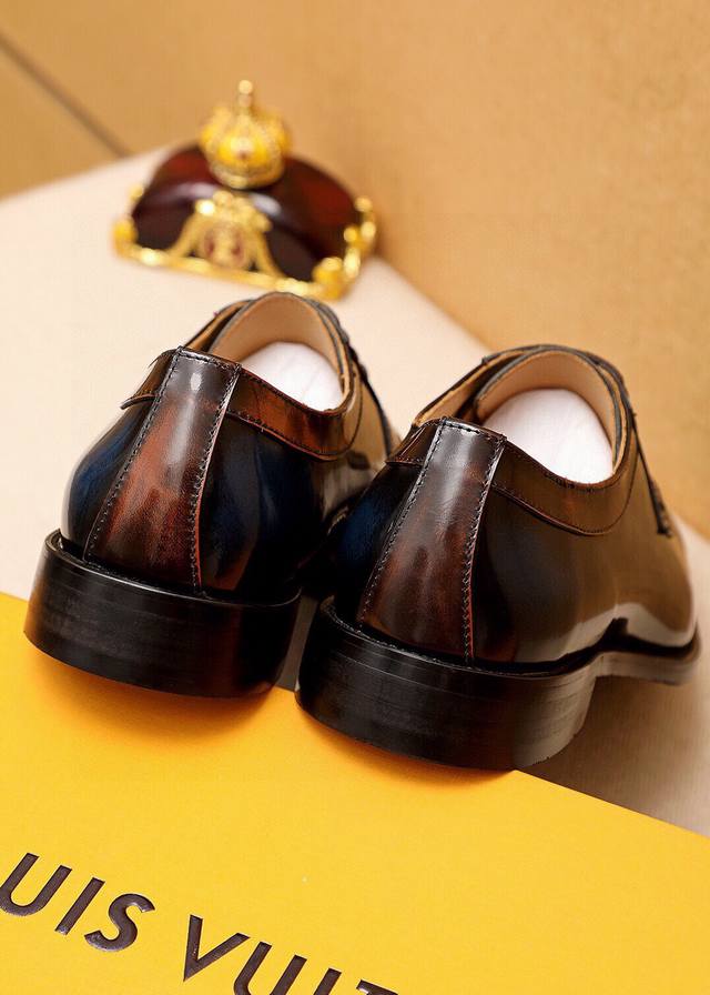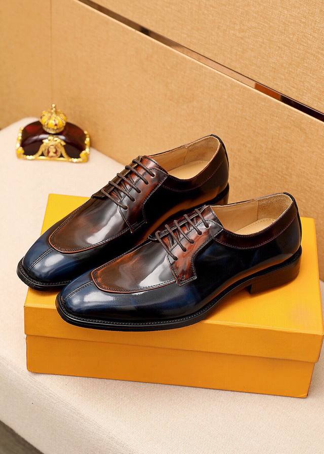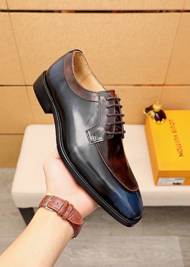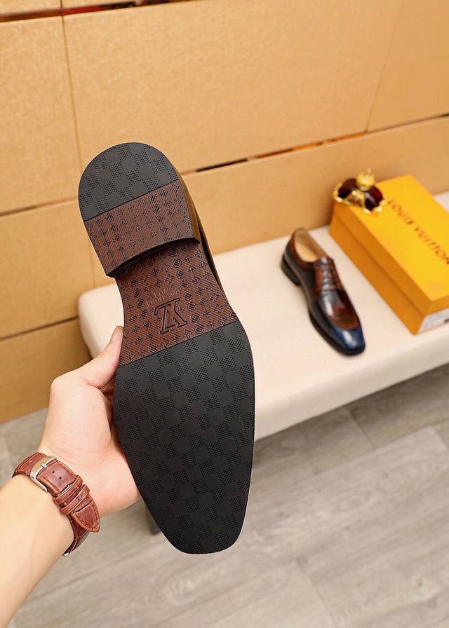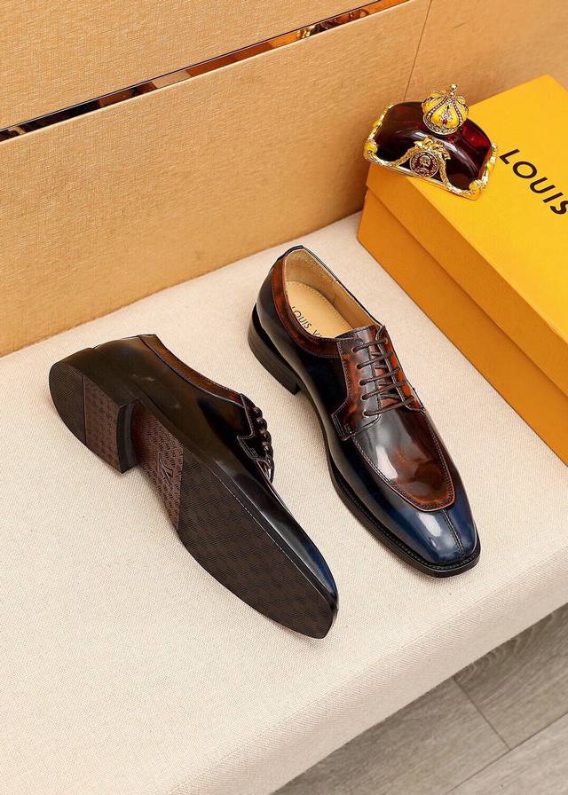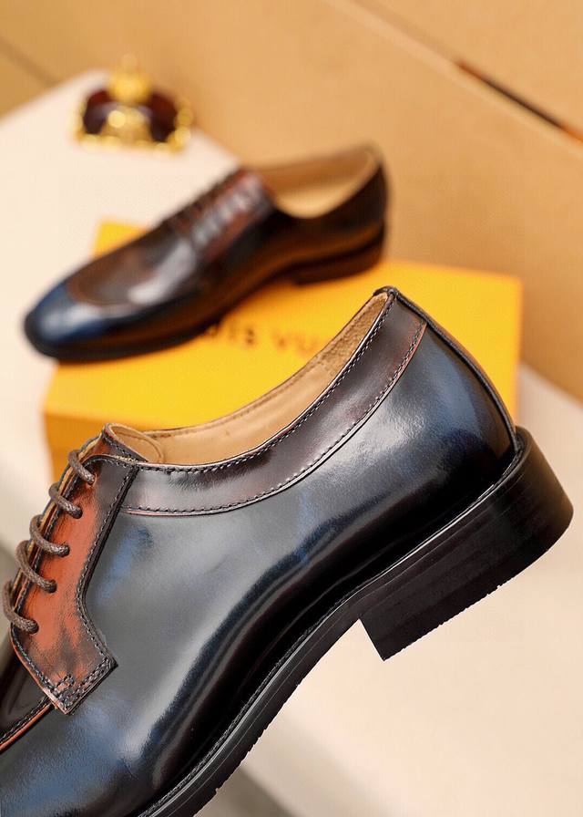 Product Trademark: Louis Vuitton Business Leather Shoes True to Size: 38-44, 45, 46, 47 (Custom Made) Materials: Selected imported top-grain split cowhide upper, imported top-grain cowhide lining. Strong three-dimensional visual effect, combined outsole. Colors: 2 colors available.