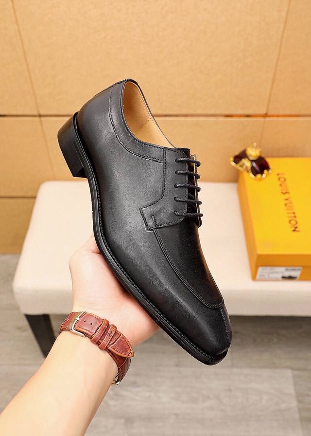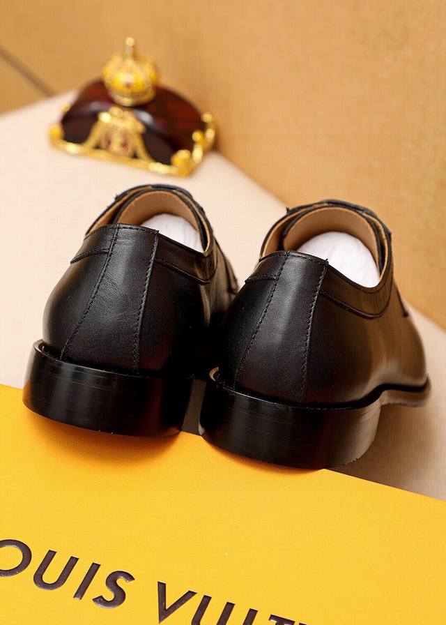 Product Trademark: Louis Vuitton Business Leather Shoes True to Size: 38-44, 45, 46, 47 (Custom Made) Materials: Selected imported top-grain calfskin upper, imported top-grain cowhide lining. Strong three-dimensional visual effect, combined outsole. Colors: 2 colors available.