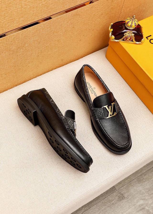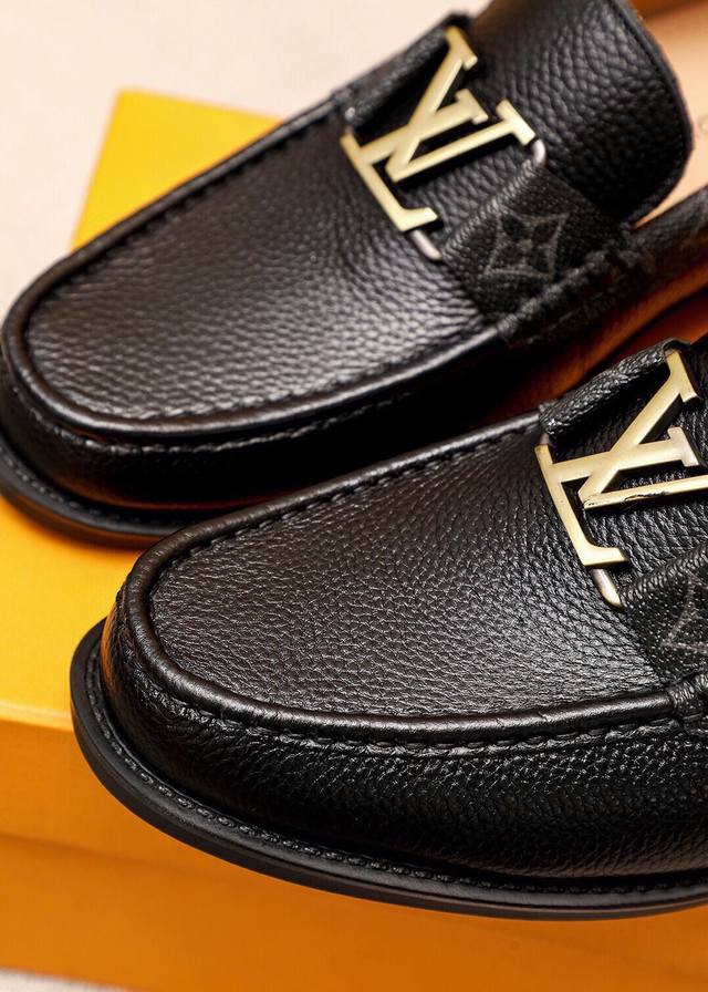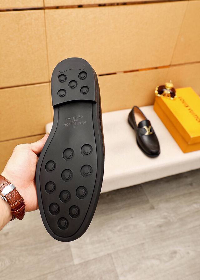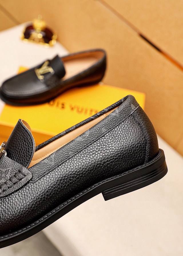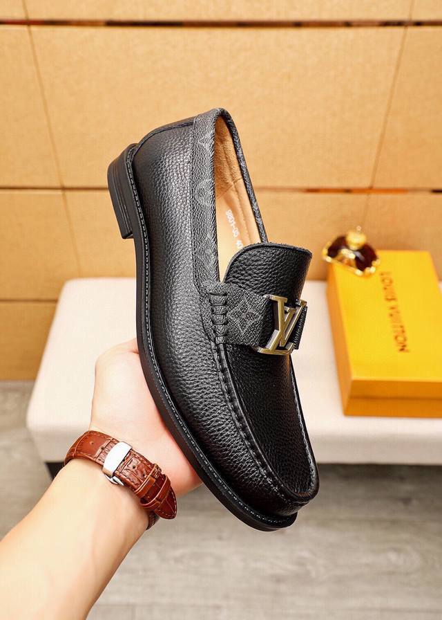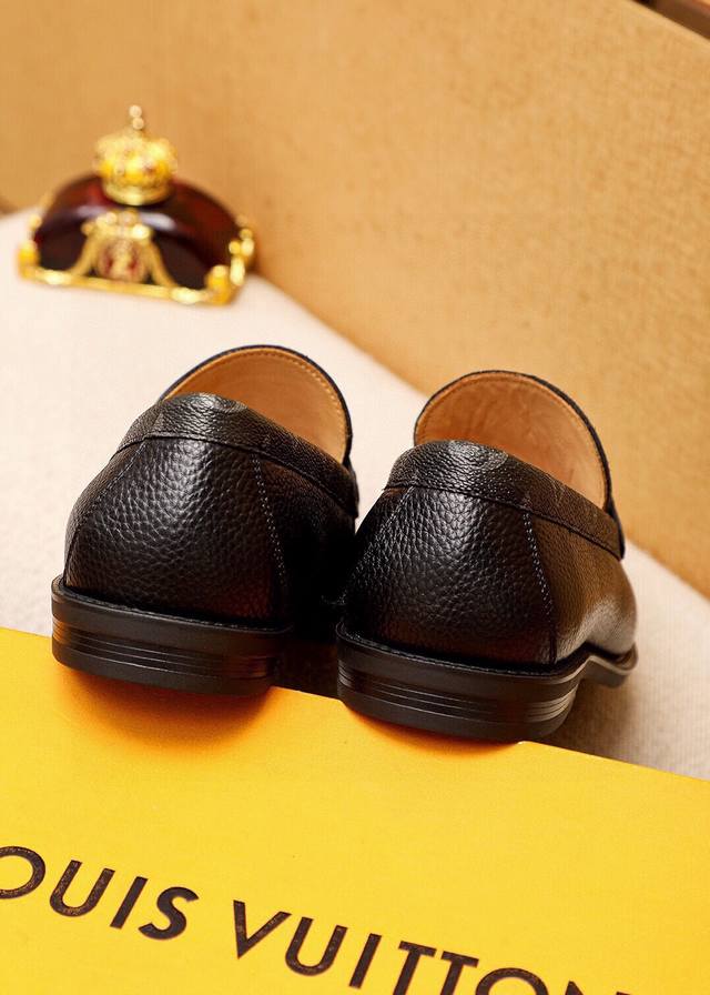 Product Trademark: Louis Vuitton Casual Leather Shoes DDD True Sizes: 38-44, 45 (Custom Made) DDD Product Materials: Selected imported top-grain pebbled cowhide upper + luxurious hardware buckles, imported top-grain cowhide lining. Strong three-dimensional visual effect, original rubber outsole DDD Colors: 2 colors available DDD