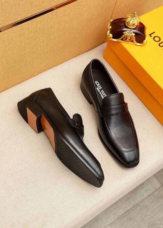 Product Trademark: Louis Vuitton Casual Leather Shoes DDD True Sizes: 38-44, 45-46 (Custom Made) DDD Product Materials: Selected imported top-grain pebbled leather upper + luxurious hardware buckles, imported top-grain leather lining. Strong three-dimensional visual effect, combination outsole DDD Colors: 2 colors available DDD