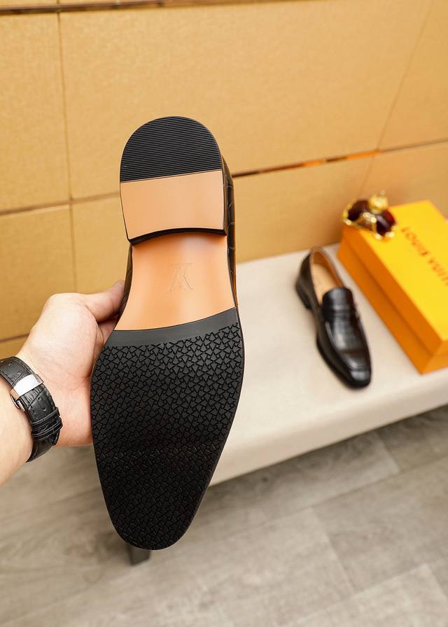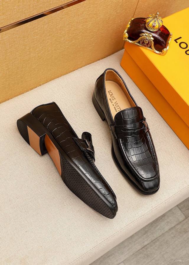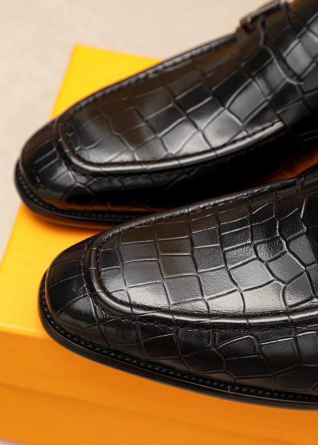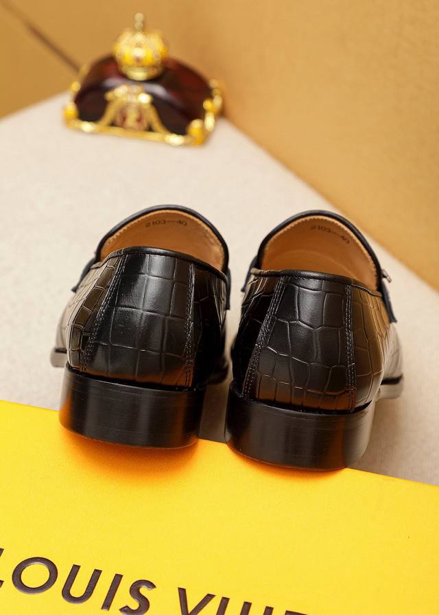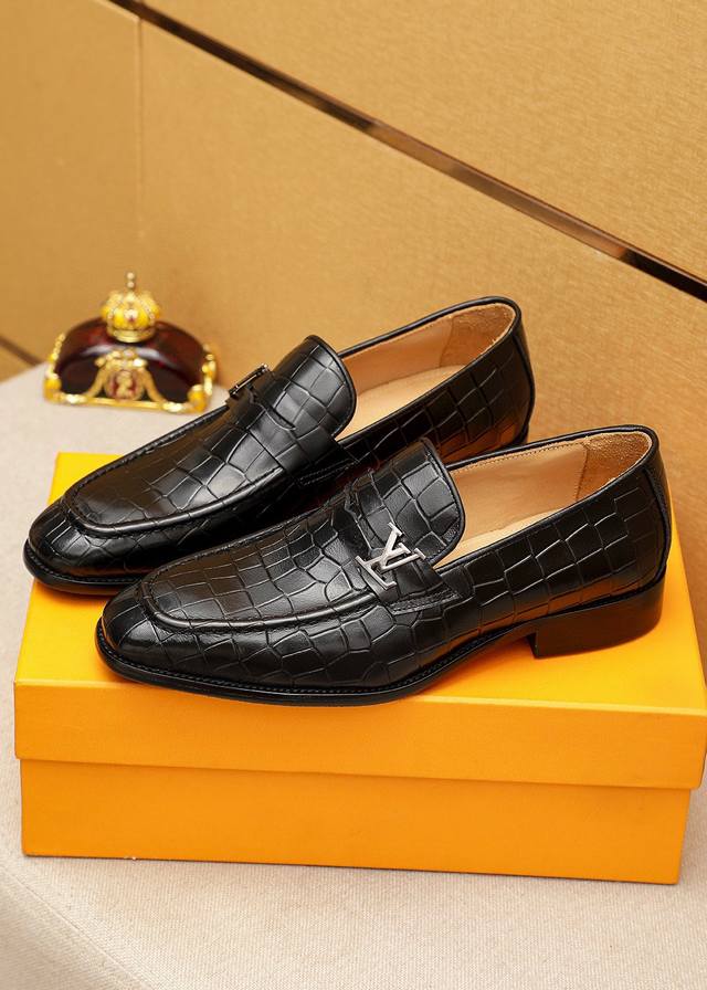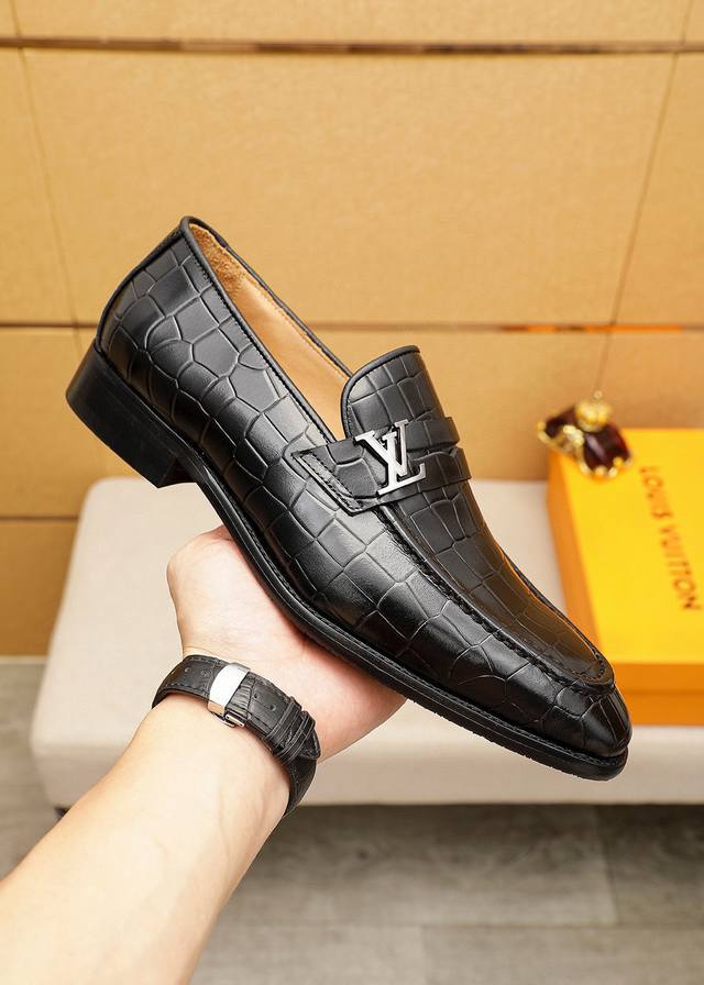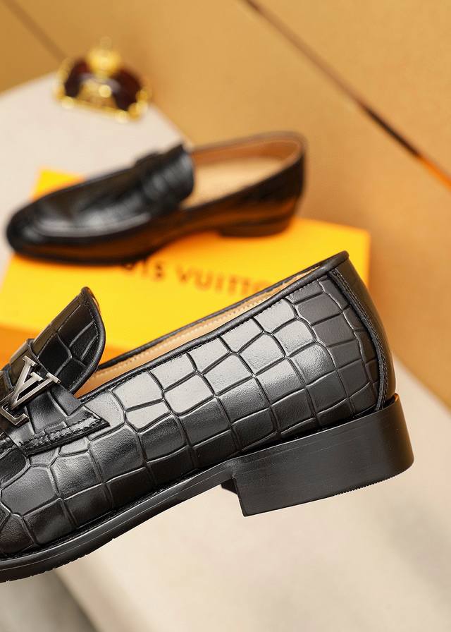 Product Trademark: Louis Vuitton Casual Leather Shoes DDD True Sizes: 38-44, 45-46 (Custom Made) DDD Product Materials: Selected imported top-grain calfskin embossed upper + luxurious hardware buckles, imported top-grain cowhide lining. Strong three-dimensional visual effect, combined outsole DDD Colors: 1 color available DDD