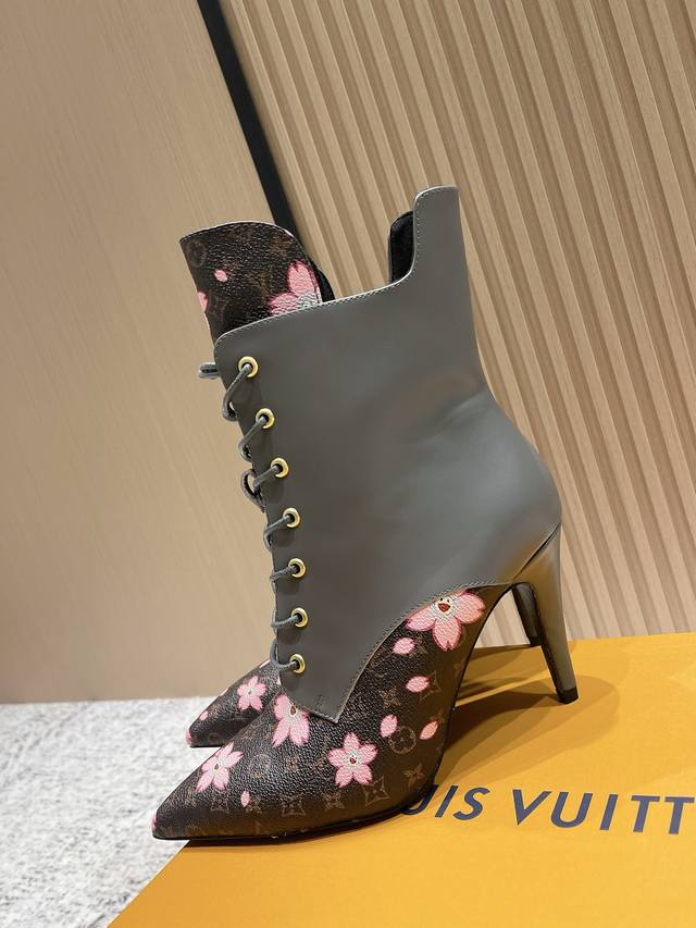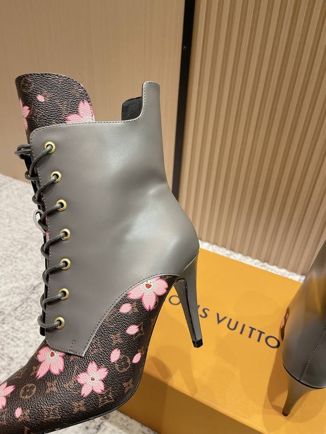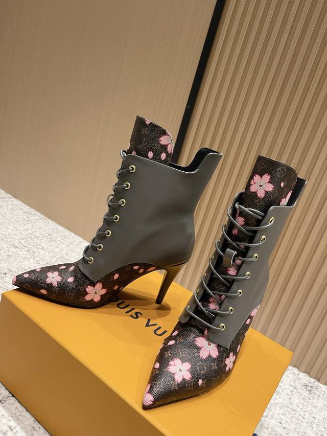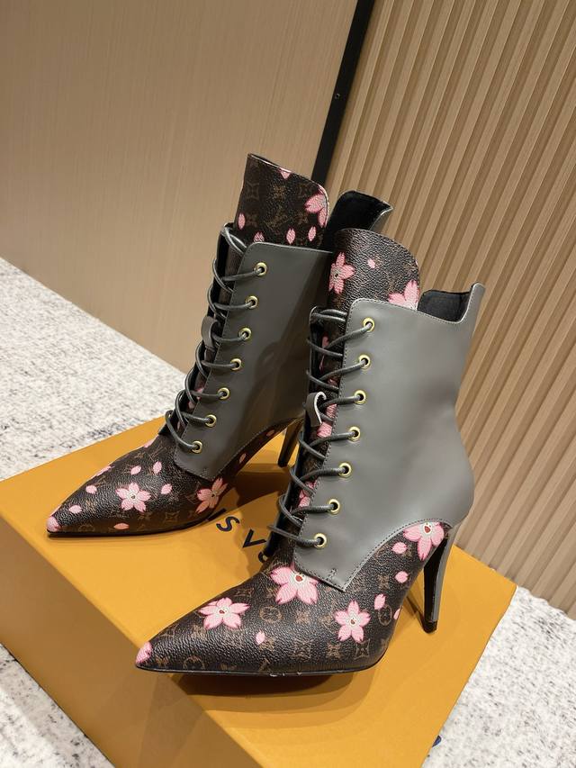 LV Louis Vuitton 25Ss New Autumn/Winter High-Heeled Martin Boots, Short Boots, Versatile and Slim Fit. Three-dimensional and full shape, exuding elegance, comfortable to wear, very retro style, full of presence, original monogram design, classic style, perfect details, cool and trendy. Upper: Cowhide Leather, Lining, Insole! Genuine Leather Outsole. Size: 35-39, Size 40 (Made to order, no returns or exchanges).