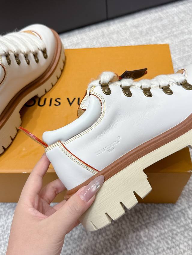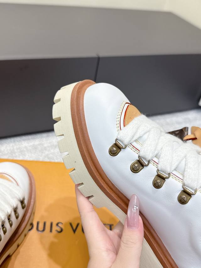 Louis Vuitton counter's latest open-edge beaded cowhide thick-soled printed loafer hiking shoe series! Purchase-level new