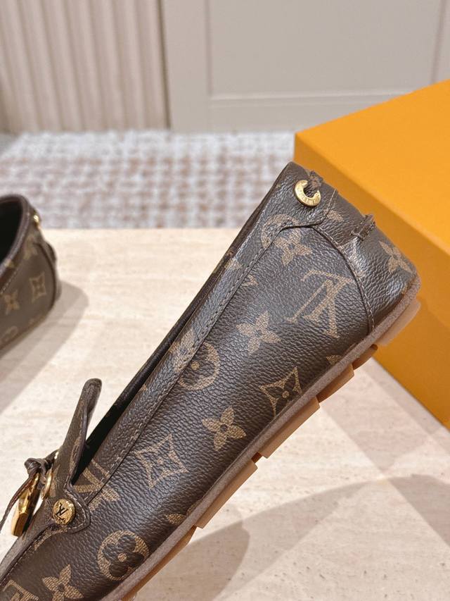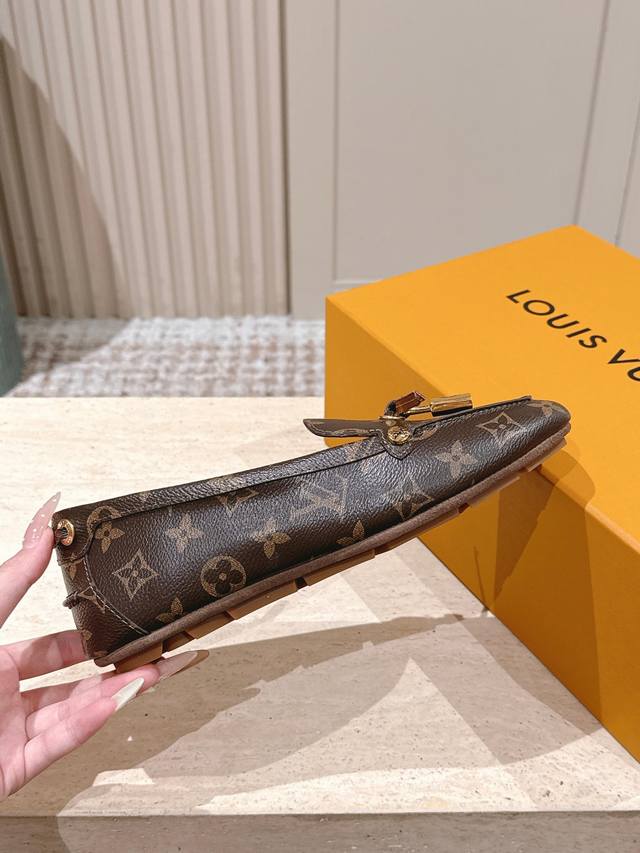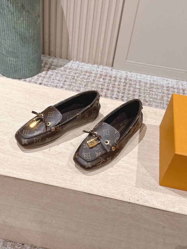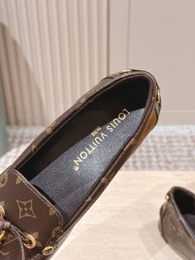 Retailer Grade: Louis Vuitton 25Ss flat loafers/driving shoes, made with premium cowhide, lightweight and comfortable moccasin construction, hand-stitched upper, adorned with the Louis Vuitton Cicle logo and patterned lace tips. The butterfly-inspired design exudes luxury and sophistication, perfectly embodying the brand's luxurious style. The lining is made of water-dyed cowhide, and the outsole features original A-grade rubber granules. Sizes: 35-42, 40, 41, 42. Custom orders are non-refundable and non-exchangeable.