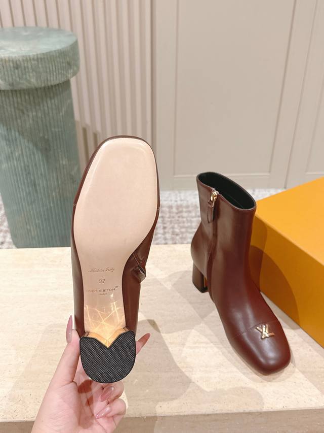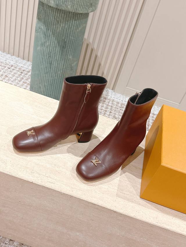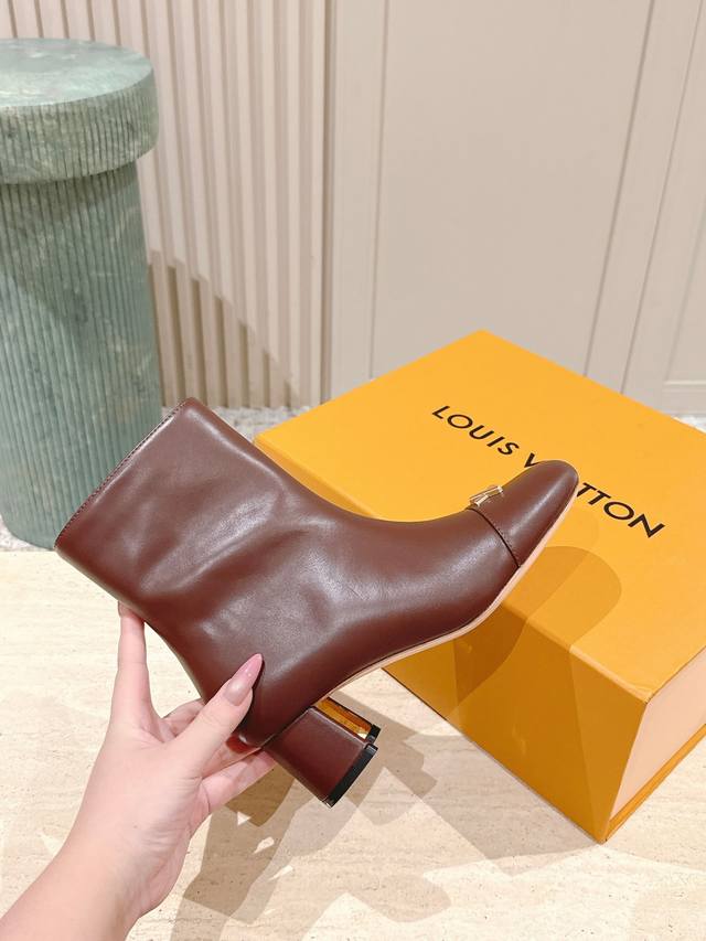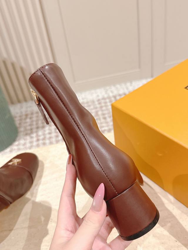 Retailer Grade: DDD Louis Vuitton trendy lace-up ankle boots, a new style worn by celebrities on the runway. DDD Casual, versatile, and fashionable, comfortable to wear, adorned with the Louis Vuitton logo for a sophisticated and elegant look. DDD Material: Imported calfskin; Lining: Sheepskin; Outsole: Original Italian genuine leather. DDD Heel height: 5.5cm. DDD Size: #35-41. DDD