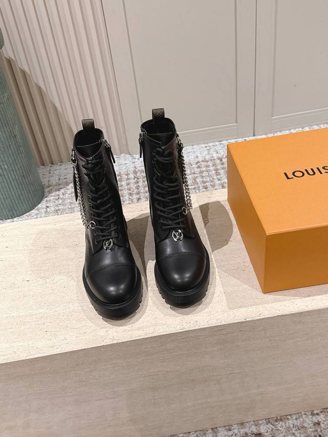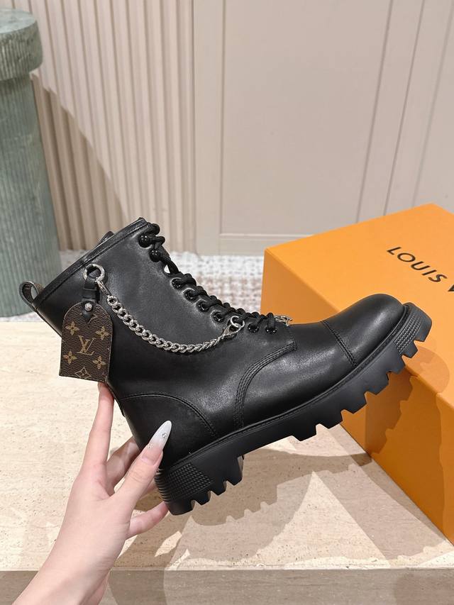 Retail-grade couple's style Louis Vuitton trendy ankle boots, a new style worn by celebrities on the runway. Casual, versatile, and fashionable, comfortable to wear, adorned with Louis Vuitton logo accents for a sophisticated and elegant look. Material: Imported calfskin; Lining: Sheepskin; Outsole: Original mold combination outsole. Size: #35-45, 45 custom-made.