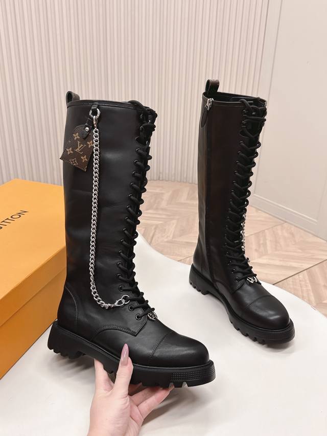 Selling Louis Vuitton 25Ss new autumn/winter high-top riding boots. Versatile last, slim fit. Three-dimensional and full shape, very stylish, comfortable to wear, with a retro feel and a strong presence. Original monogram design with elastic band, classic style, perfect details, cool and trendy. Upper: Calfskin; Lining: Calfskin; Insole: Size: 35-39/40