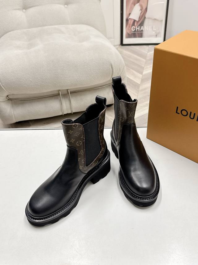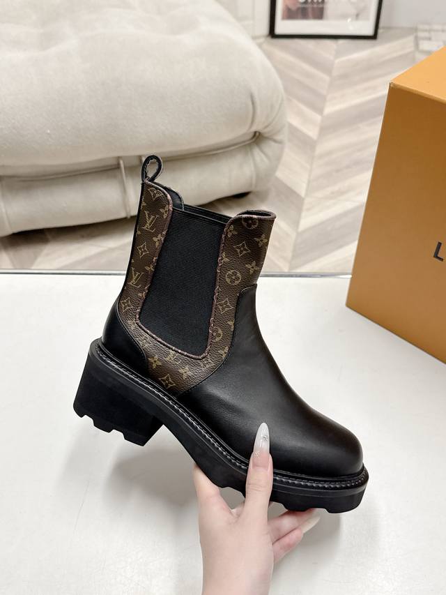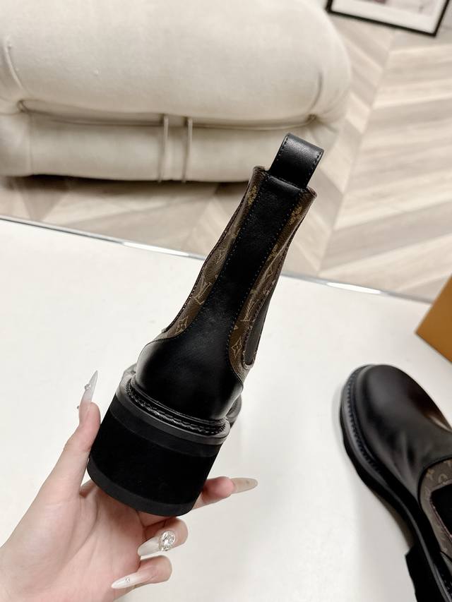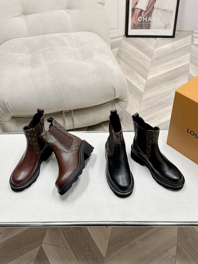 Selling Louis Vuitton 25Ss new autumn/winter Martin boots, short boots, versatile and slim fit. The design is three-dimensional and full, very stylish and comfortable. Very retro and exudes a strong aura. Original monogram design with elastic band, classic style, perfect details, cool and trendy. Upper: Imported calfskin. Lining and insole. Sizes: 35-39, 40, 41, 42. No returns or exchanges.