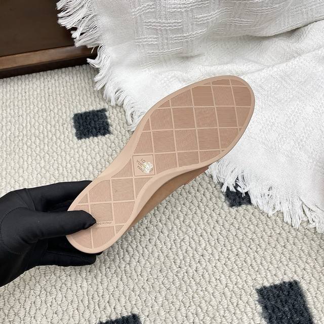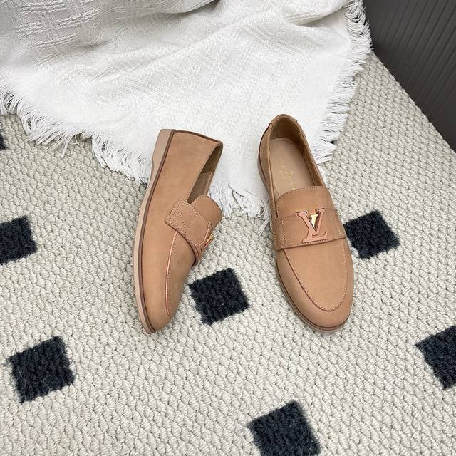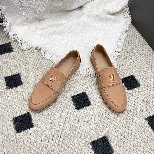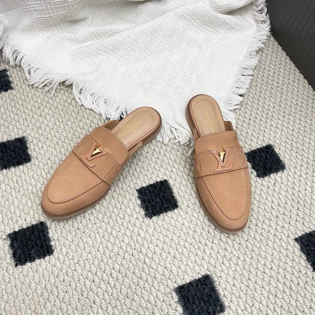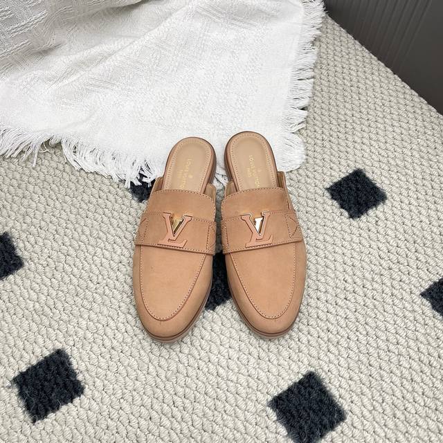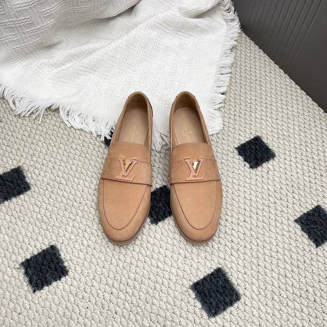Single Shoes 440 Slippers, LV Louis Vuitton 25Wf Spring/Summer New Loafers DDD When the monogram pattern meets the sharp edge of workwear, this loafer reconstructs a classic with crossover ingenuity. The monogram webbing outlines the clean lines of a trunk handle, while the metal chain and belt buckle intertwine, injecting street tension into the retro texture. The thick sole design hides a double trick, subtly elongating the proportions with a 3-4cm height increase, exuding a sophisticated aura with every step. The embedded cushioned insole with elastic technology balances support and comfort, making it suitable for commuting, long walks, or everyday outings without pressure. From the crisp workwear of cropped trousers to the relaxed casualness of a pleated skirt DDD Material: Suede cowhide DDD Lining: Sheepskin DDD Outerwear: Original mold custom anti-slip outsole DDD Size: 35-39 40 41 Custom DDD