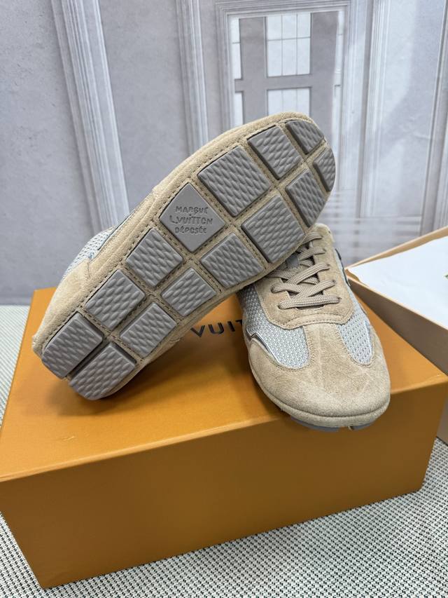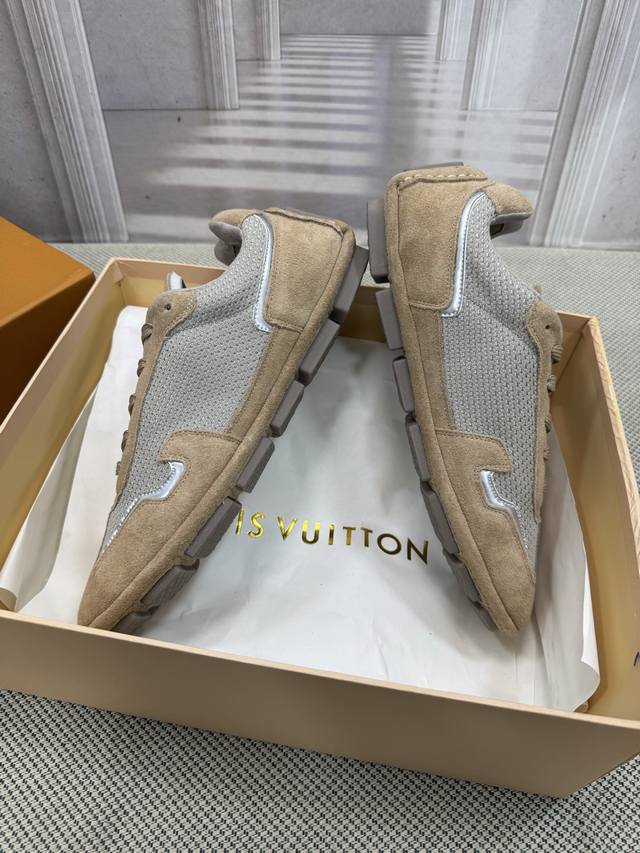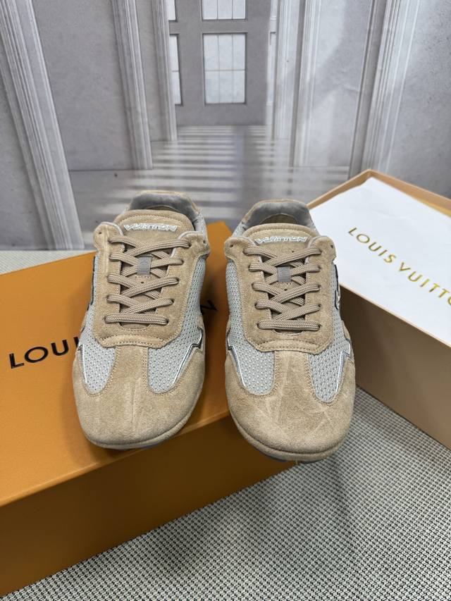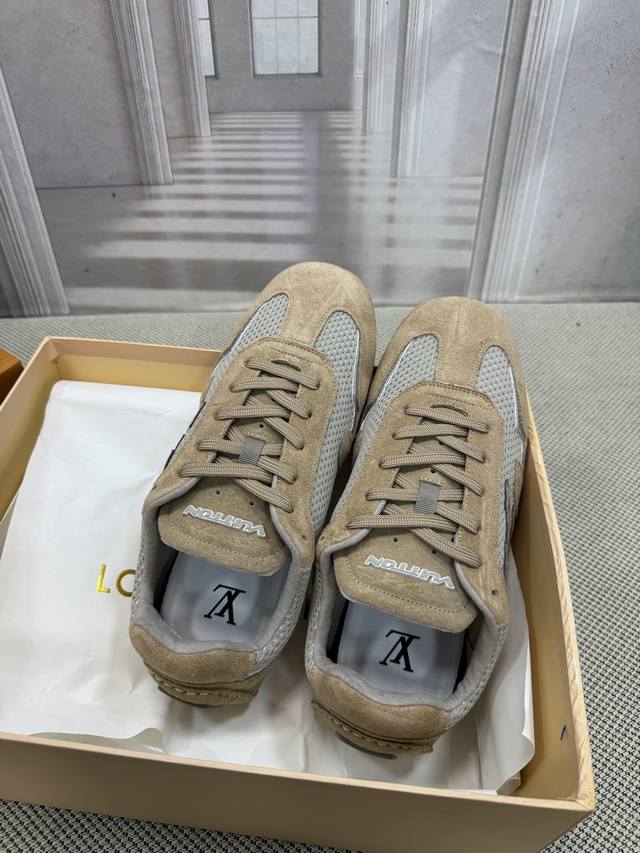 Trall casual sneakers. Originally developed, a 1:1 replica of the highest-end models on the market. Made of suede calfskin and lightweight mesh, with an EVA+LPU outsole, a Monogram floral pattern on the outsole, and embroidered Vuitton English lettering on one side, they're incredibly stylish!