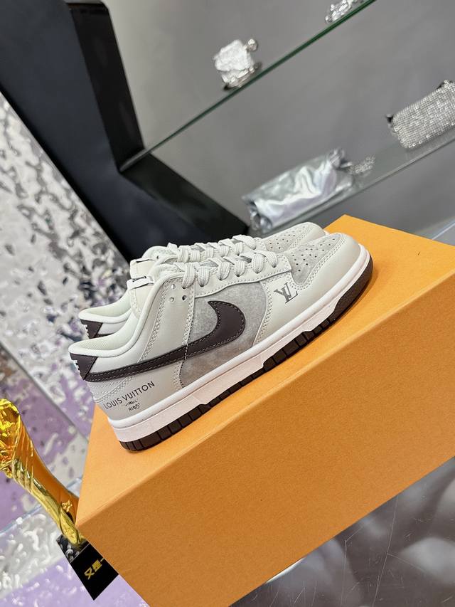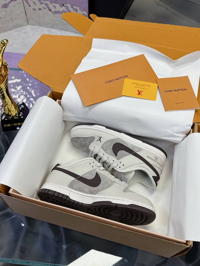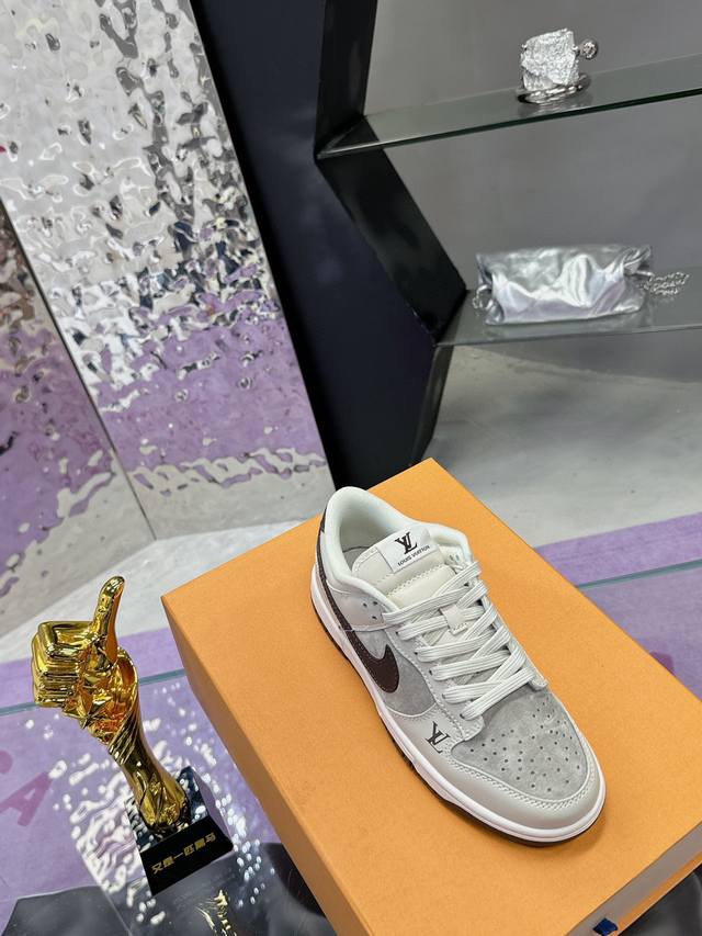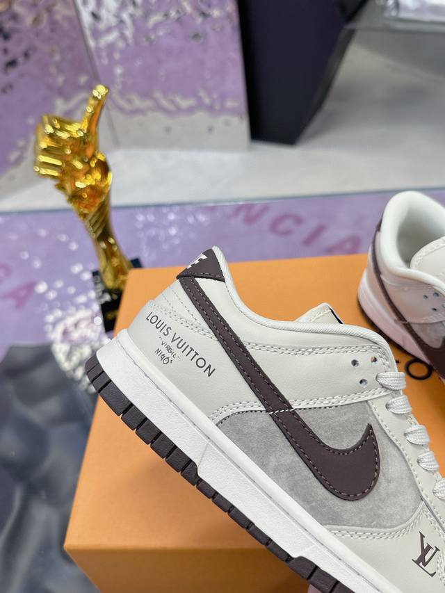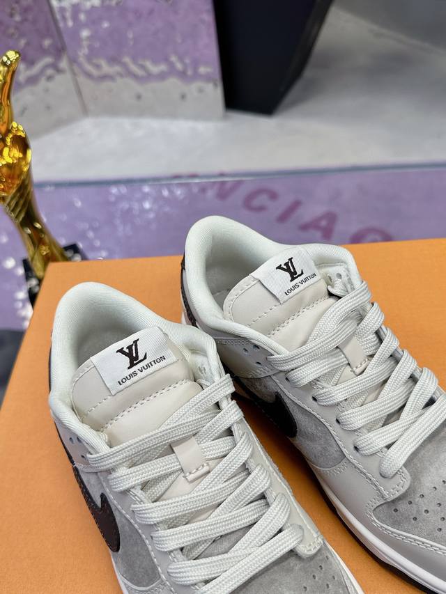 Nk Sb Dunk Low Lv joint-fur navy blue anniversary high-end customized low-top casual sneakers