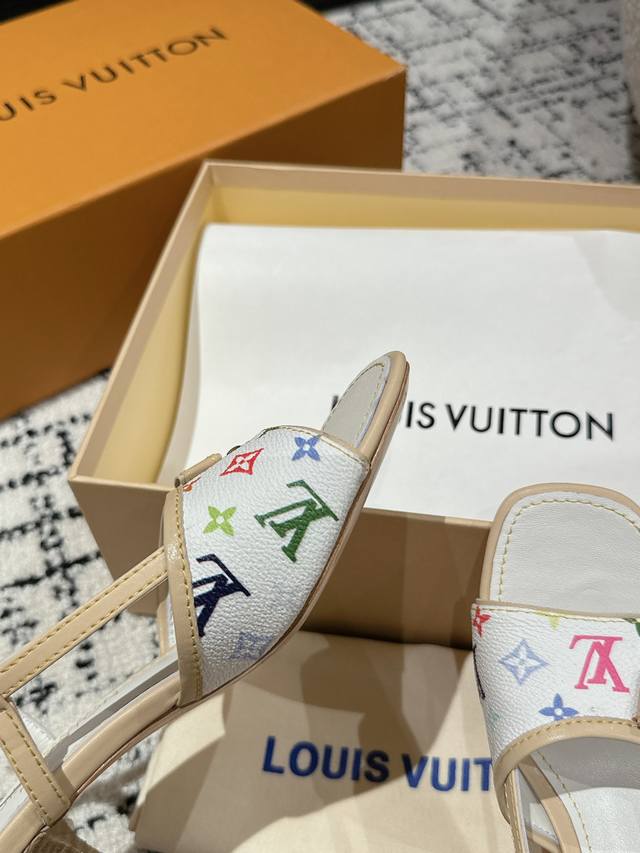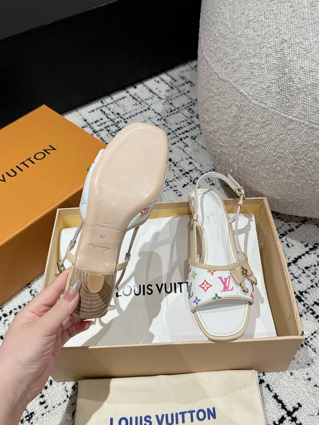 The brown leather with monogram denim color is so outstanding! The perfect kitten heel, high-end classic, sexy and comfortable, it has the full score that beautiful summer shoes can give, like a must-have item!