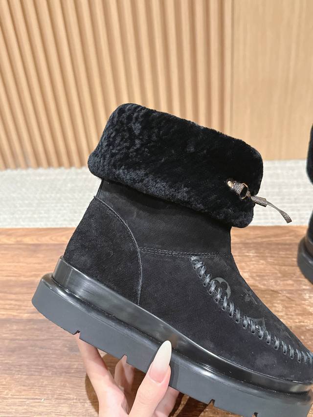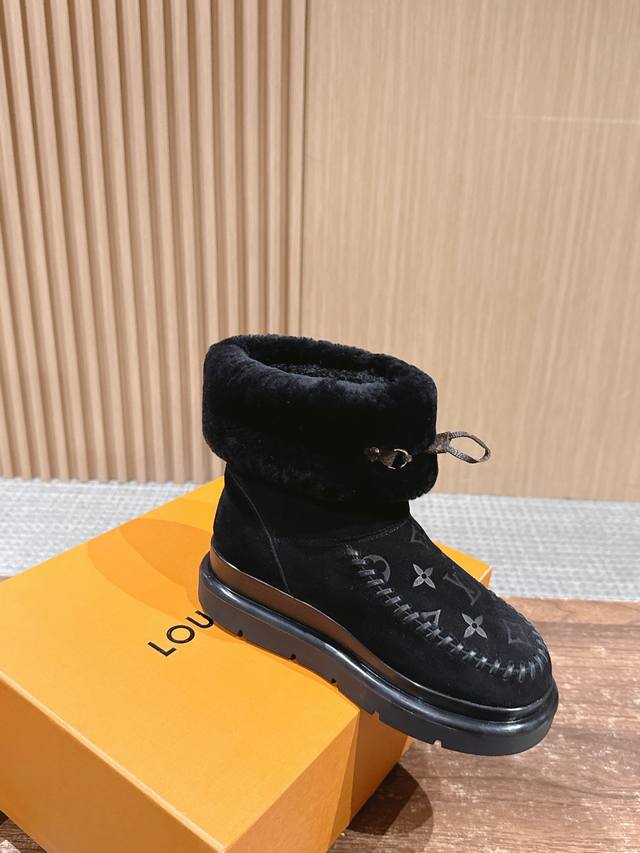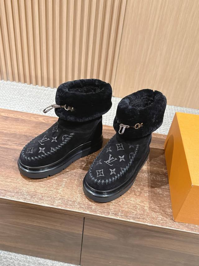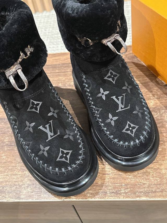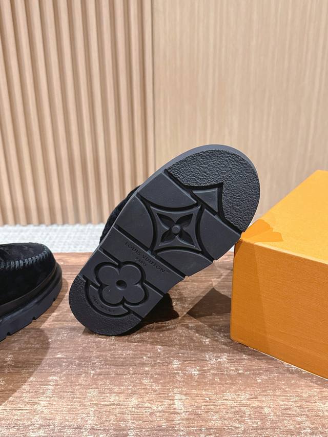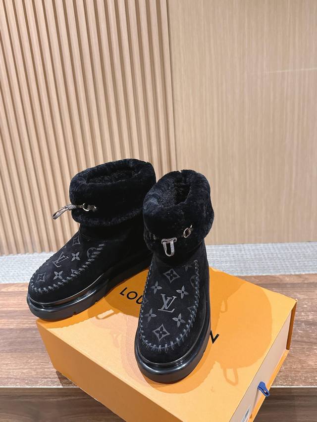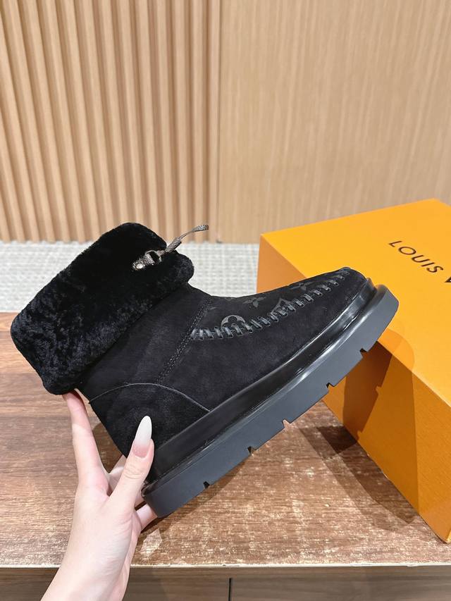 This Cortina ankle boot is from the LVski collection, combining a suede cowhide upper with a comfortable sheepskin lining. The Monogram pattern on the upper and leather laces adorned with the LV Circe logo create sophisticated details. It features a non-slip rubber outsole, allowing for a seamless transition between winter vacations and city life. Sheepskin lining, rubber outsole, and Monogram floral embossed sole. Size: 35-39 40 41 Custom orders are non-refundable/non-exchangeable.