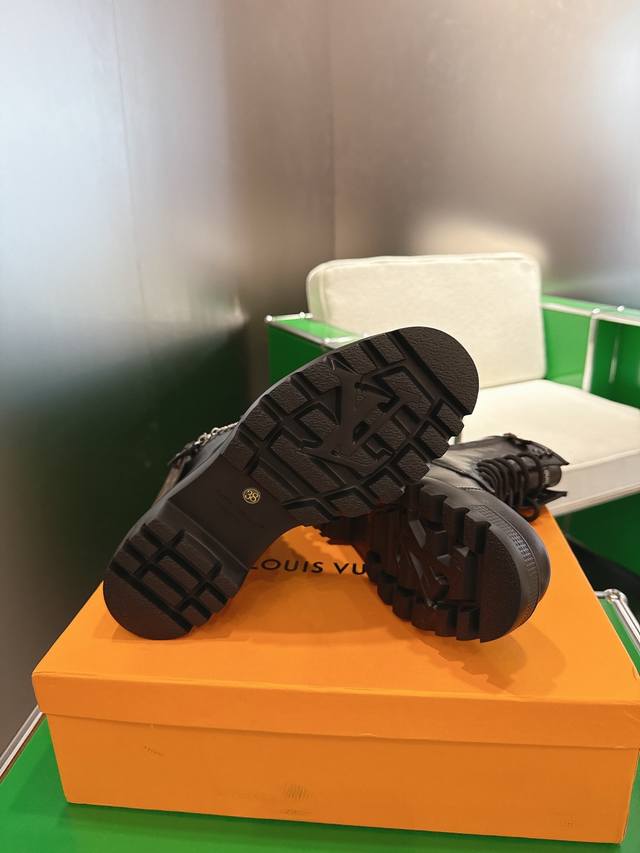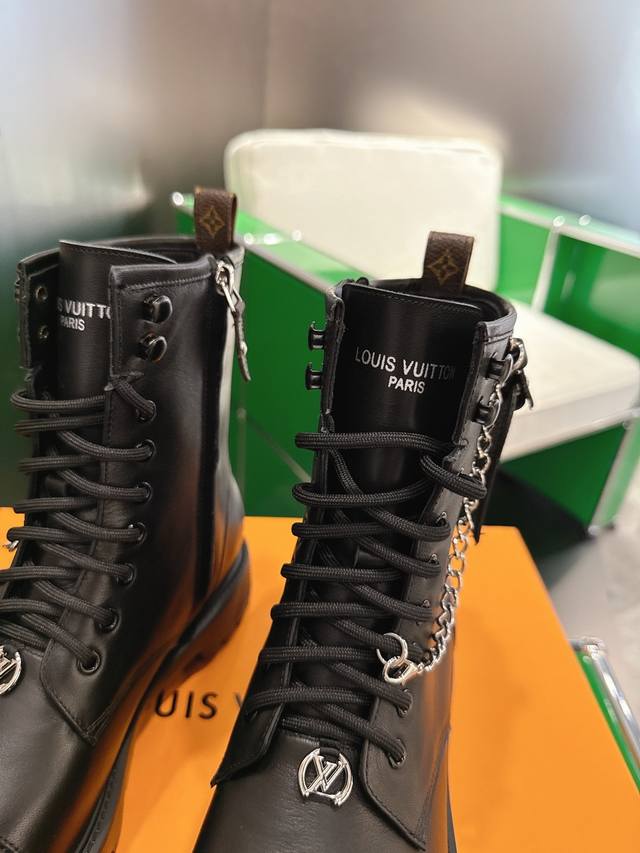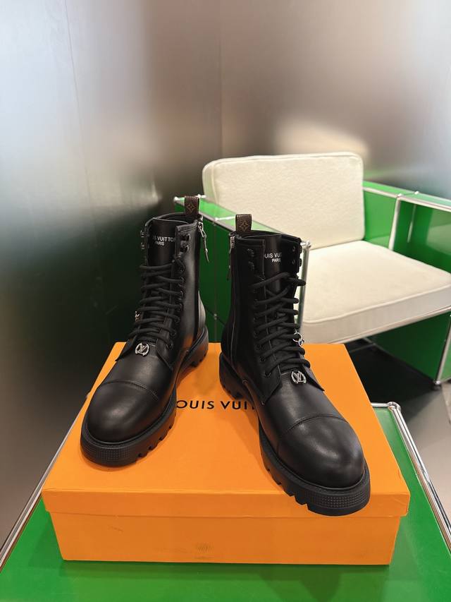 Top Quality DDD Louis Vuitton 2025 Fall/Winter High-End Customization, a runway piece worn by numerous celebrities and influencers. A century-old classic, exquisite craftsmanship, and comfortable to wear. This Citizen flat boot features a military style with supple cowhide leather. Eye-catching Monogram perforations highlight the toe and heel. V-shaped LV logos adorn the lightweight rubber outsole and sides, while fabric laces and a Monogram canvas heel strap complete the details. A side zipper design makes it easy to put on and take off. Material: Full-grain cowhide; Lining: Cowhide; Buckle: Original mold; Outsole: Original mold; Color: Black, Brown; Sizes: 36-40, 41, 42. Custom orders are accepted, but returns and exchanges are not accepted. DDD