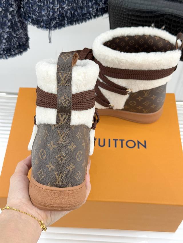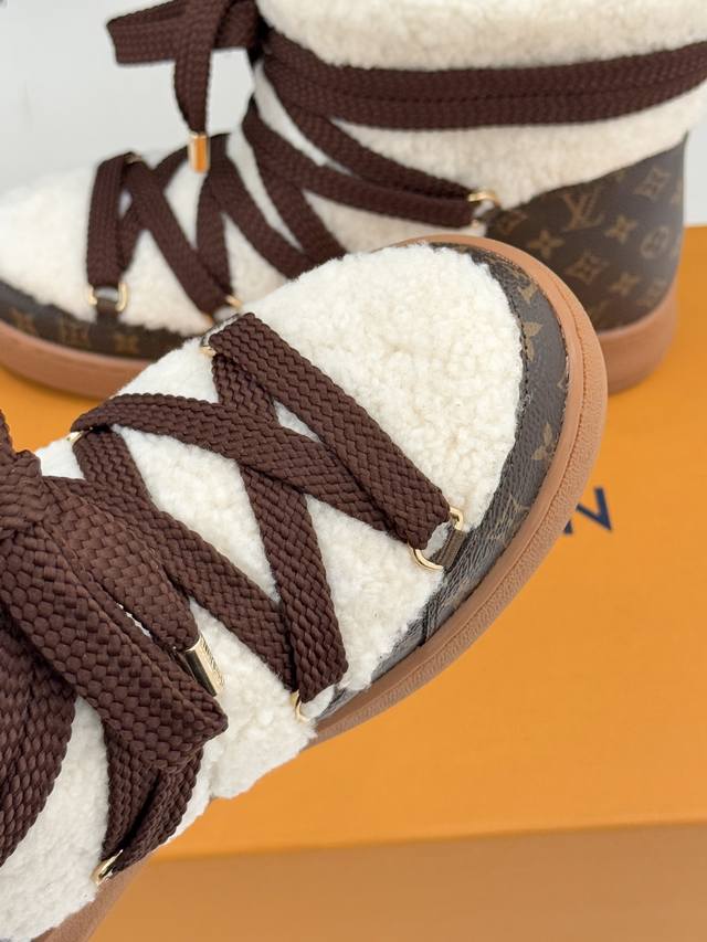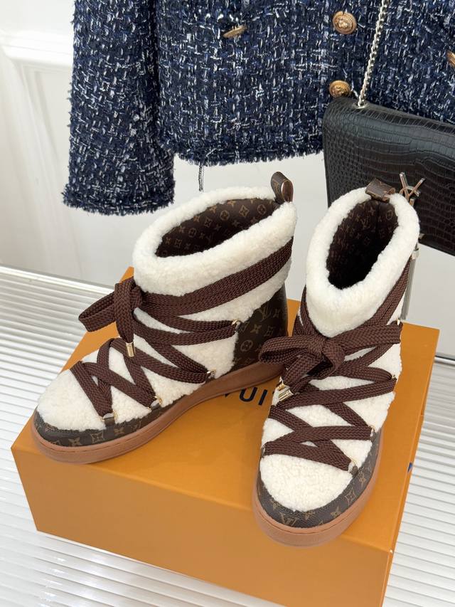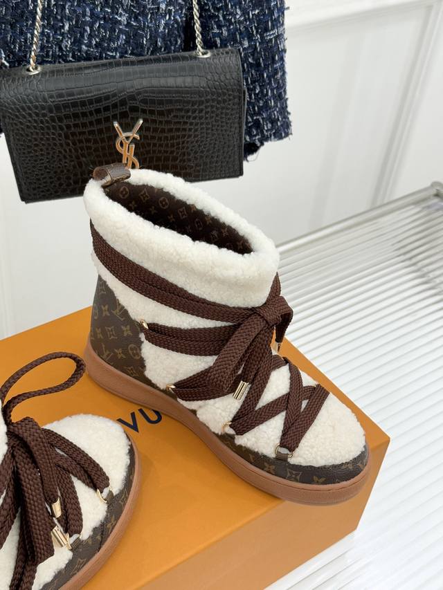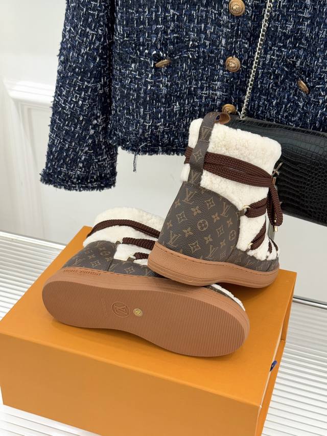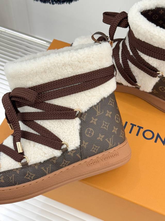Top Quality DDD New Louis Vuitton Monogram Lace-up Snow Boots DDD Selected waterproof and wear-resistant materials to resist rain and snow DDD High-density warm lining for continuous heat retention DDD Exquisite craftsmanship withstands wind and snow. DDD Outer material is made of sheepskin and monogrammed leather DDD Original custom-made non-slip TPU outsole DDD Size: 35-39 40 41 Custom-made DDD