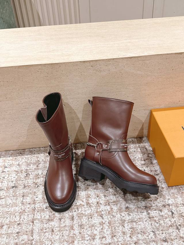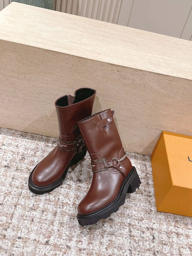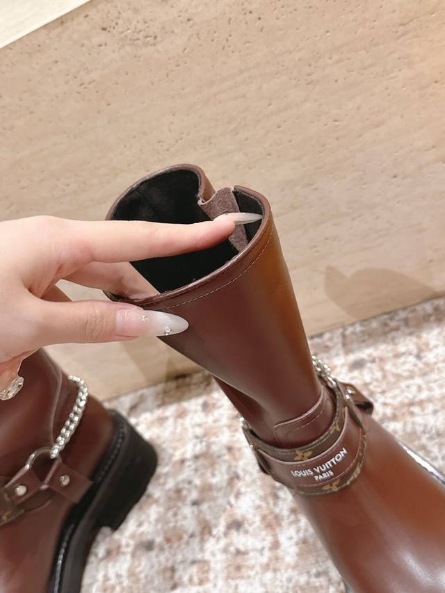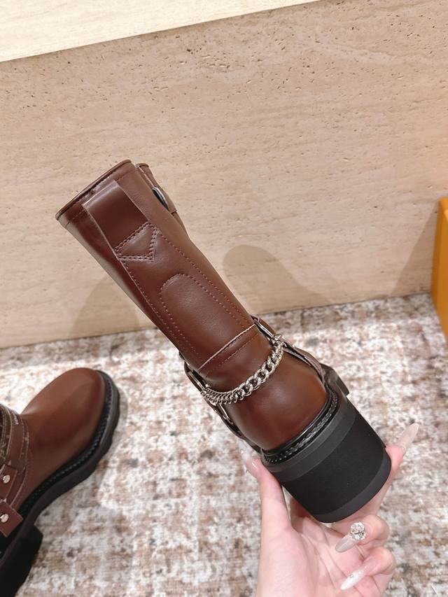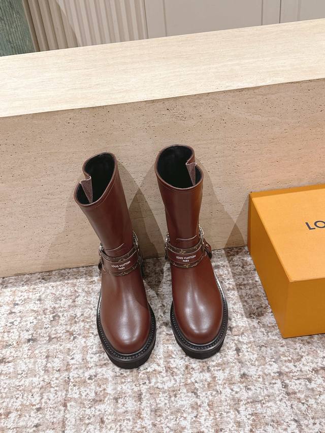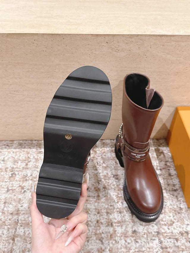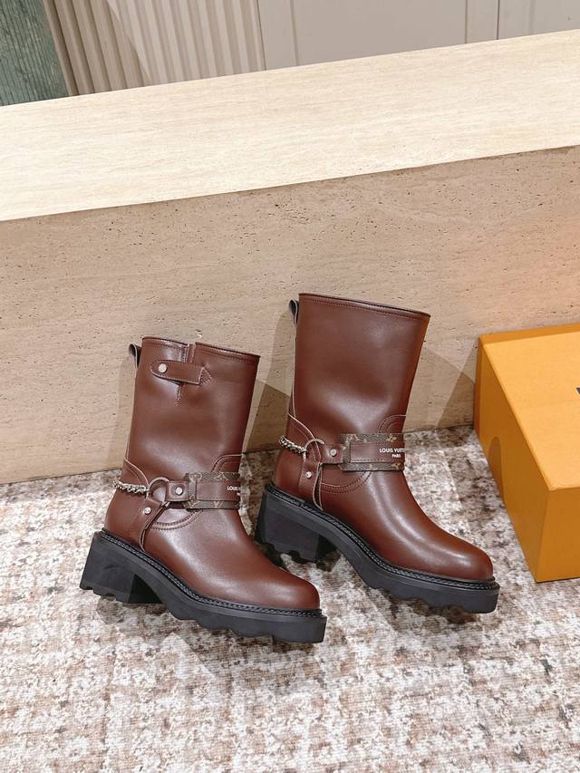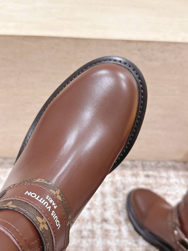 Top Version: High-quality Louis Vuitton 25Ss Lv autumn/winter new high-heeled ankle boots. Versatile and slimming design. Three-dimensional and full shape, exuding elegance. Comfortable to wear, very retro and stylish. Original monogram design, classic style, perfect details. Upper: Original imported top-grain cowhide. Lining: Imported cowhide. Outsole: Italian imported genuine leather. Heel height: 5cm. Size: 35-40. 40.41 Made to order, no returns or exchanges.