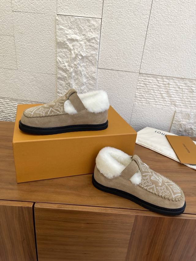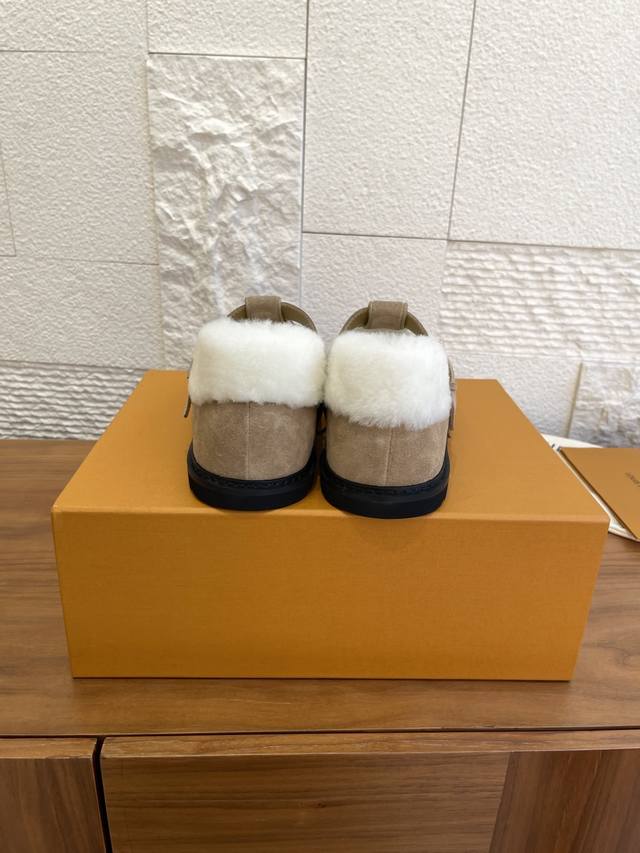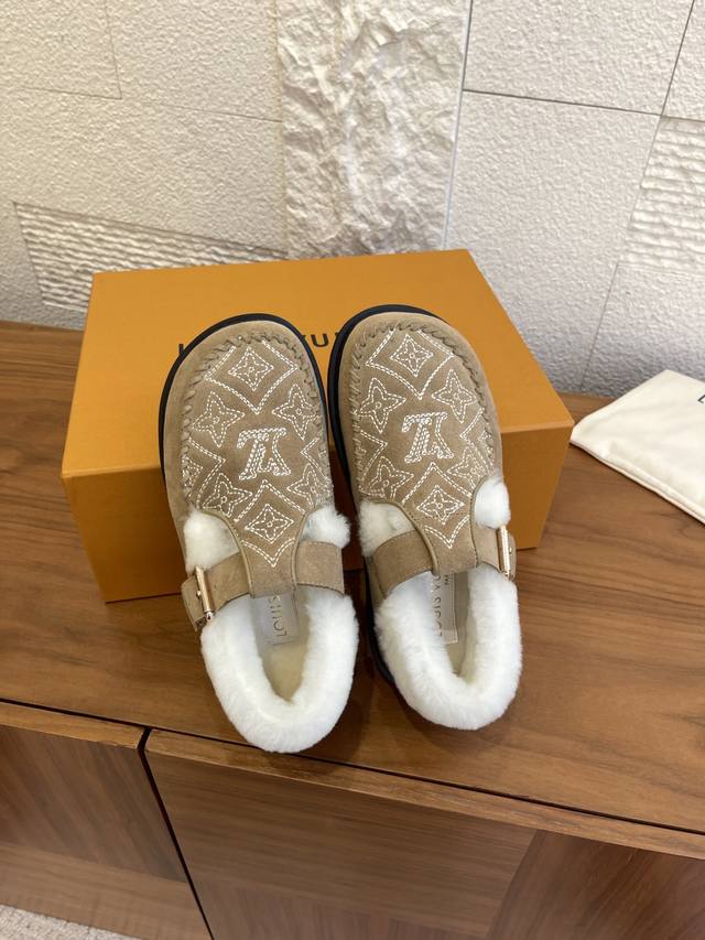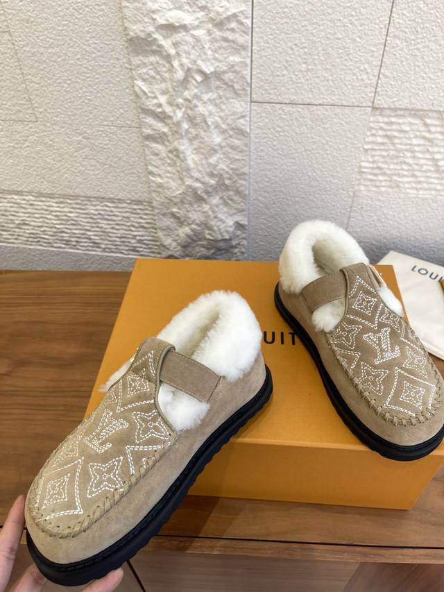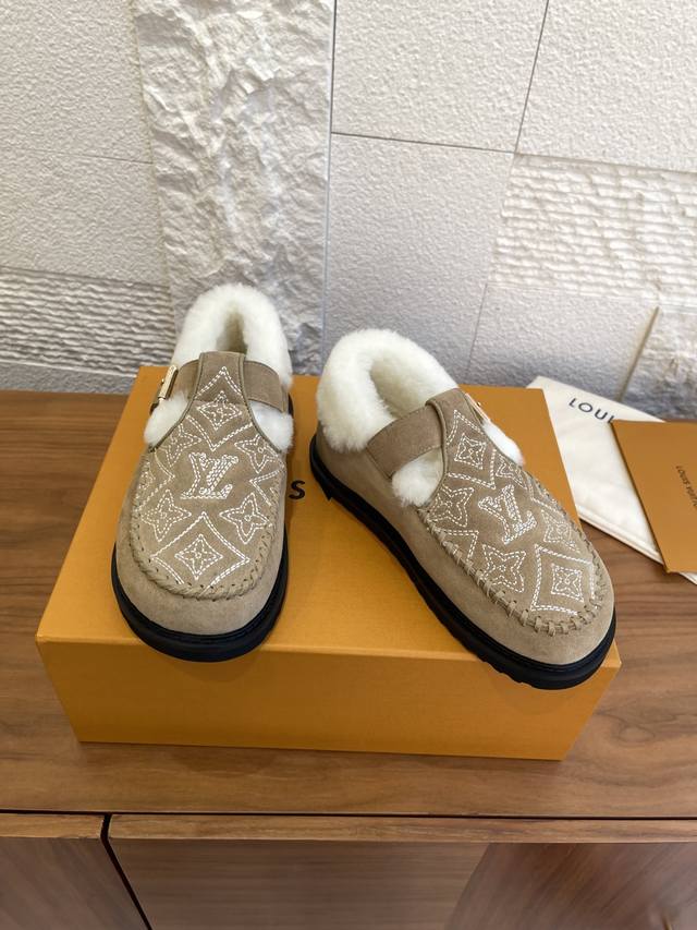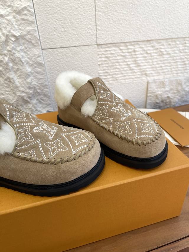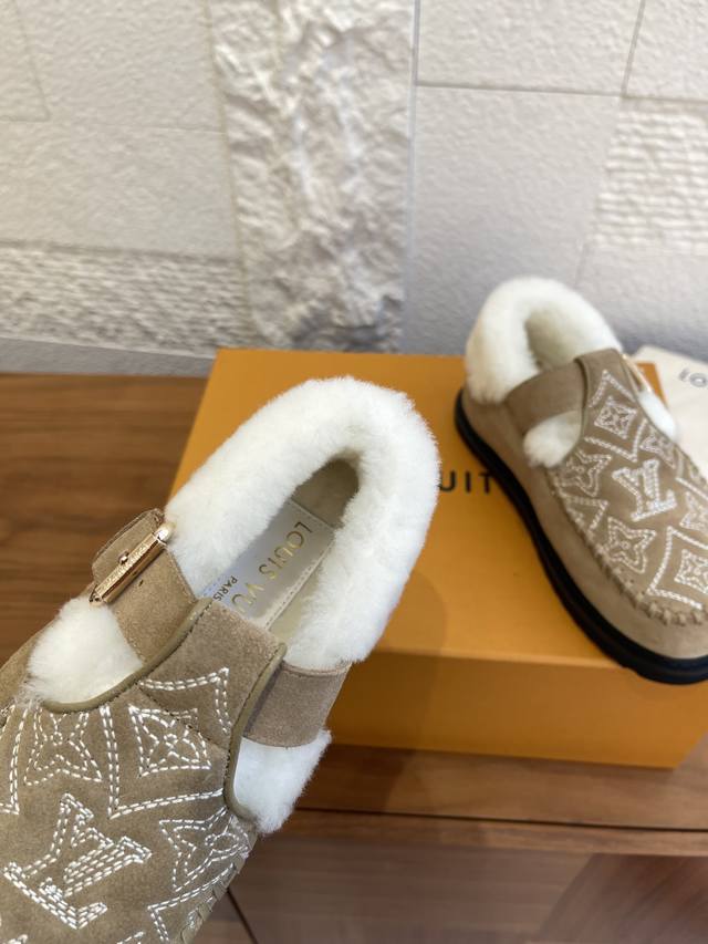 Top Version: Louis Vuitton 2025 Fall/Winter New Colorado Comfort Mary Jane Shoes with Furry Lining. These Colorado Comfort Mary Jane shoes are crafted from velvety smooth suede cowhide leather, combined with a sheepskin lining for ultimate comfort. The upper features Monogram embroidery, and the patterned buckle makes adjusting the laces easy. A lightweight micro-outsole completes the stylish look. Material: Imported top-grain cowhide suede; Lining: Imported sheepskin; Outsole: Original molded foam outsole; Size: 35-41 (40-41 are custom-made and non-refundable).