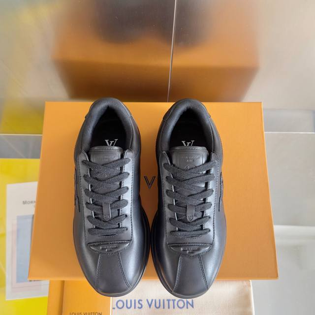 Original purchase and development Lv Buttersoft sports shoes are from the hands of Pharrell Williams. They use soft Monogram printed sheepskin and cow leather to reinterpret the trendy configuration of the 1960s, and then use the padded upper to upgrade the comfort experience. Lv letters and leather trims point out the brand identity, and Pharrell Williams' portrait and lobster embossed patterns describe the 2025 autumn and winter men's fashion show style