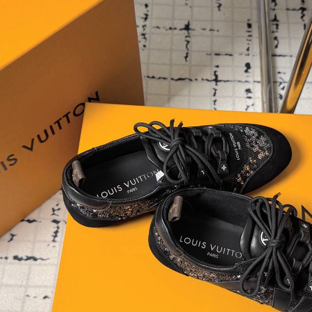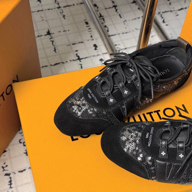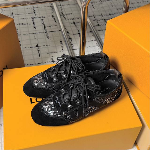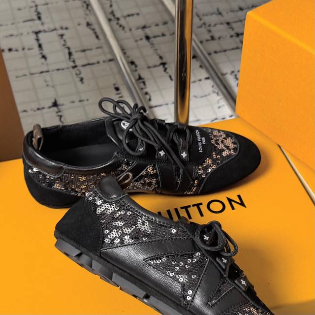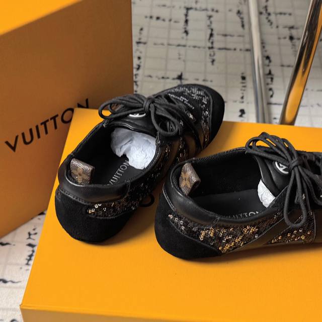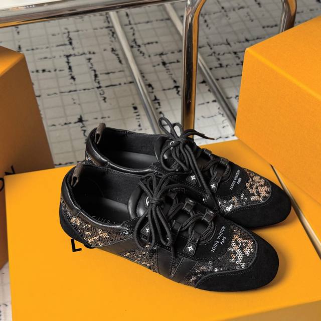 Top-of-the-line version: Couple's pair. Sizes: 35-40. 41. No returns or exchanges. LV Louis Vuitton's latest Sneakerina collection, featuring couple's ballet sneakers, German training shoes, casual flats, and sneakers. Originally purchased and developed, these LV Sneakerina ballet-inspired sneakers are crafted from silky suede leather, combining the lightweight construction of a ballet slipper with the comfort of a sneaker. The LV logo and Monogram canvas heel strap add rich details, while the Sacchetto craftsmanship and TPU outsole enhance the soft feel. Ships in exquisite packaging at the counter.