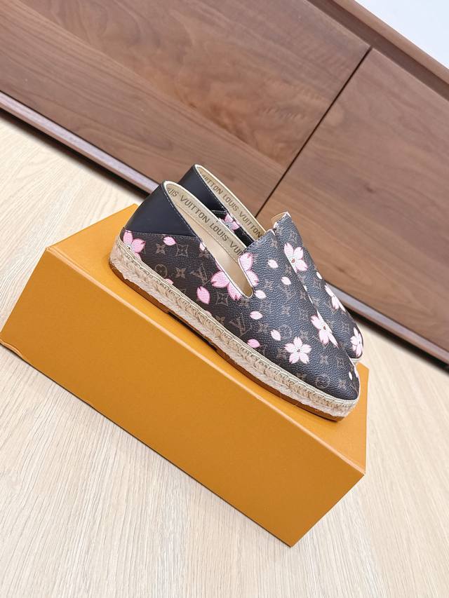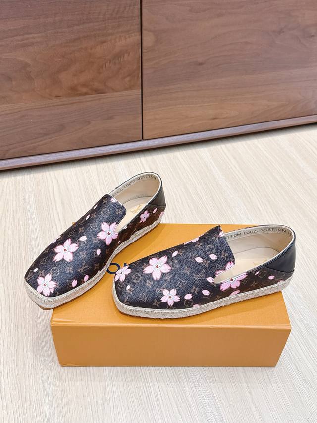 Top-quality Louis Vuitton x Takashi Murakami 6Am collaboration cherry blossom sandals, 2025 new style, espadrilles, top-tier original version. A must-have item from the official store, this latest Louis Vuitton x Takashi Murakami collaboration is top-quality! High-end feel! A must-have for bloggers both domestically and internationally, retro yet stylish, looks amazing on! Official website recommended style. Upper: Imported materials. Lining: Original lining. Outsole: Original genuine leather sole. Sizes: 35-39. Custom orders are non-refundable and non-exchangeable.
