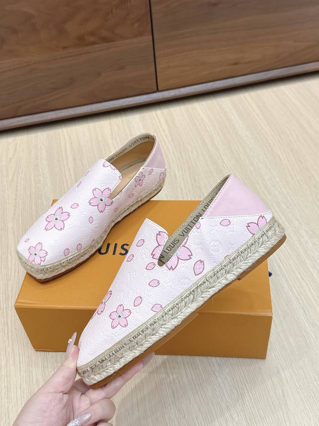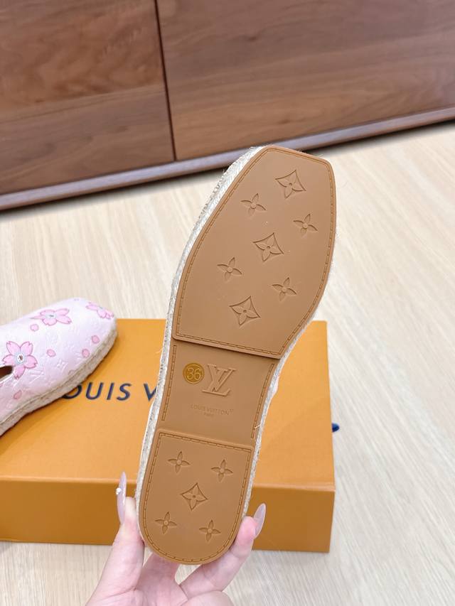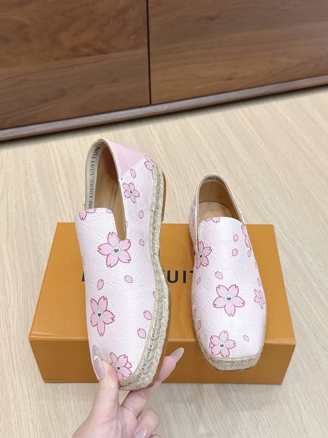 Top-quality Louis Vuitton x Takashi Murakami 6Am collaboration cherry blossom sandals, 2025 new style, espadrilles, top-tier original version. A must-have item from the official store, this latest Louis Vuitton x Takashi Murakami collaboration is top-quality! High-end feel! A must-have for bloggers both domestically and internationally, retro yet stylish, looks amazing on! Official website recommended style. Upper: Imported materials. Lining: Original lining. Outsole: Original genuine leather sole. Sizes: 35-39. Custom orders are non-refundable and non-exchangeable .