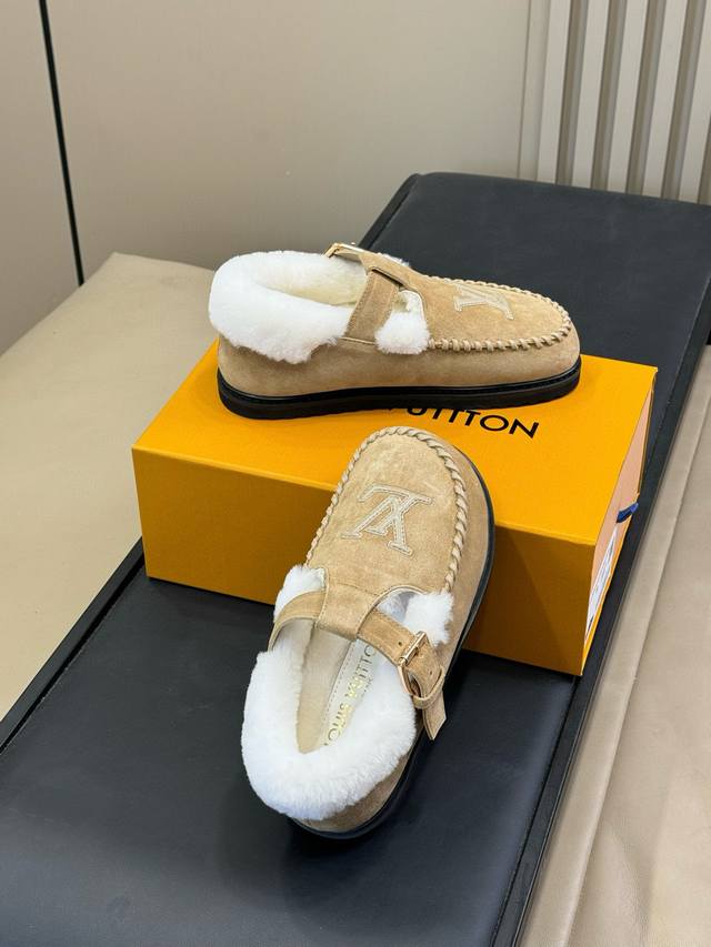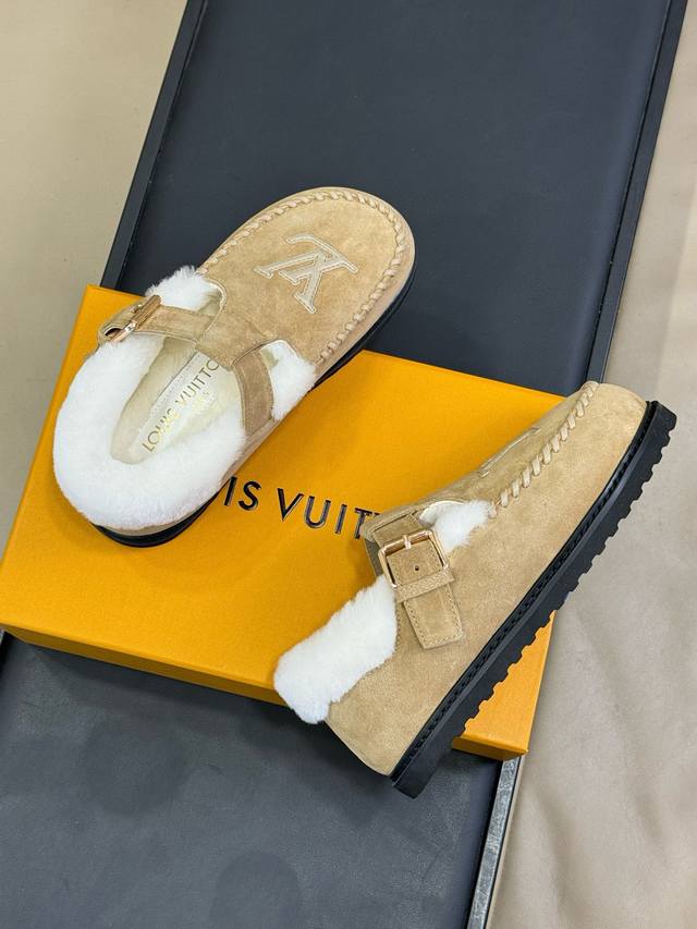 Top-tier Louis Vuitton Archlight series Mary Jane fur-lined slip-on shoes/cotton shoes (