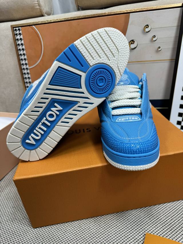 Top-tier Louis Vuitton loafers, a couple's pair that competes with all other Louis Vuitton models on the market. This new basketball sneaker is a 1:1 replica of the original model and available for purchase! Extremely comfortable and meticulously crafted, the upper is crafted from imported Italian calfskin leather, with the brand's logo and signature embellished on the side. The imported breathable mesh lining provides exceptional comfort. The original, two-tone TPU molded outsole is custom-made and features Goodyear stitching and overlocked seams. Sizes: Women's 35-40, Men's 38-45, Standard sizes, 46, 47, and 30. Custom-made, no returns or exchanges.
