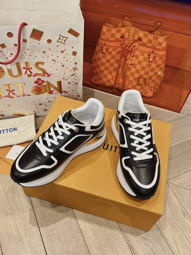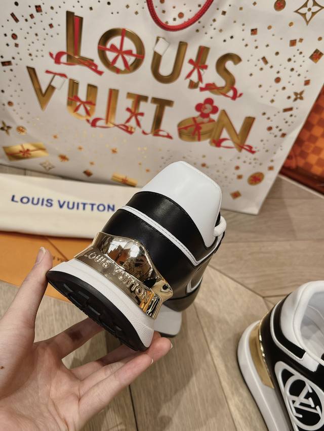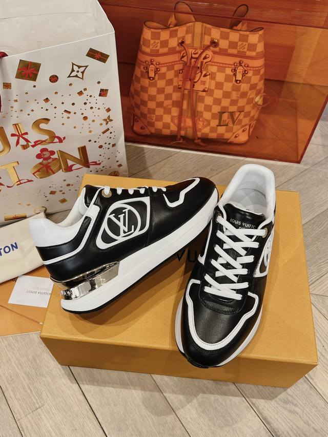 , a couple's top replica! Mercerized cowhide and apricot leather Lv lettering craftsmanship, light metal strips on the back, with a platform sole, casual and comfortable height increase