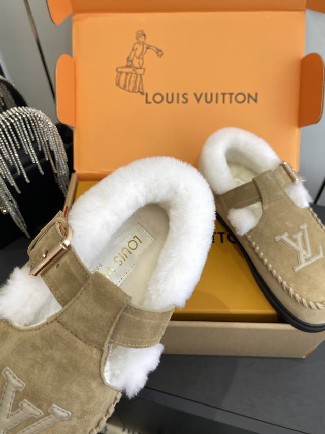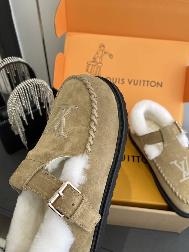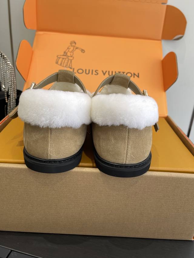 Top-tier LV Colorado series plush Mary Jane shoes. Original purchase and re-made. These Colorado plush Mary Jane shoes feature suede cowhide leather for a velvety texture, paired with a soft sheepskin lining. The LV logo stitching on the upper and the patterned buckle on the adjustable laces enrich the brand details. A lightweight micro-outsole completes the trendy style. Comes with exquisite boutique packaging. Made with original imported top-grain cowhide leather. Features include sheepskin lining and original custom-made non-slip rubber foam outsole. Sizes: 35-41. 40.41 is made to order.