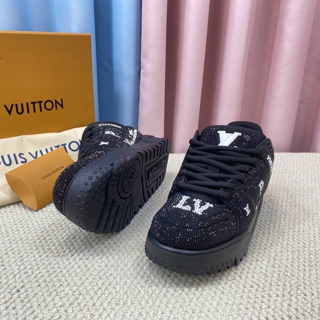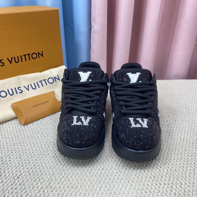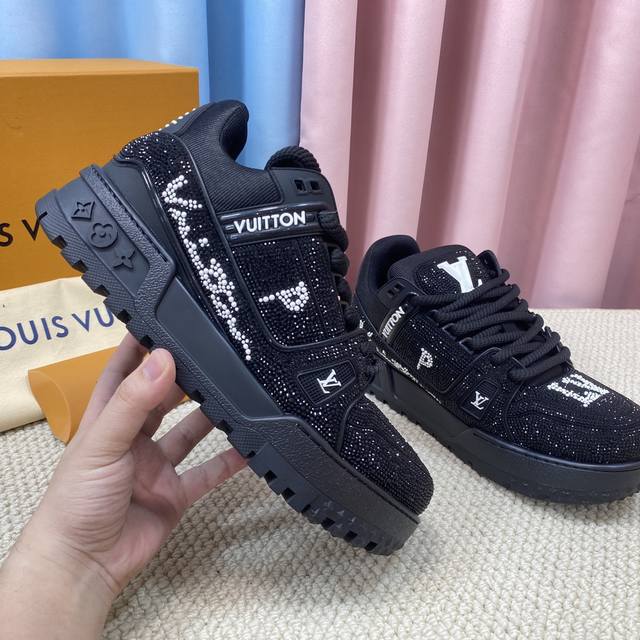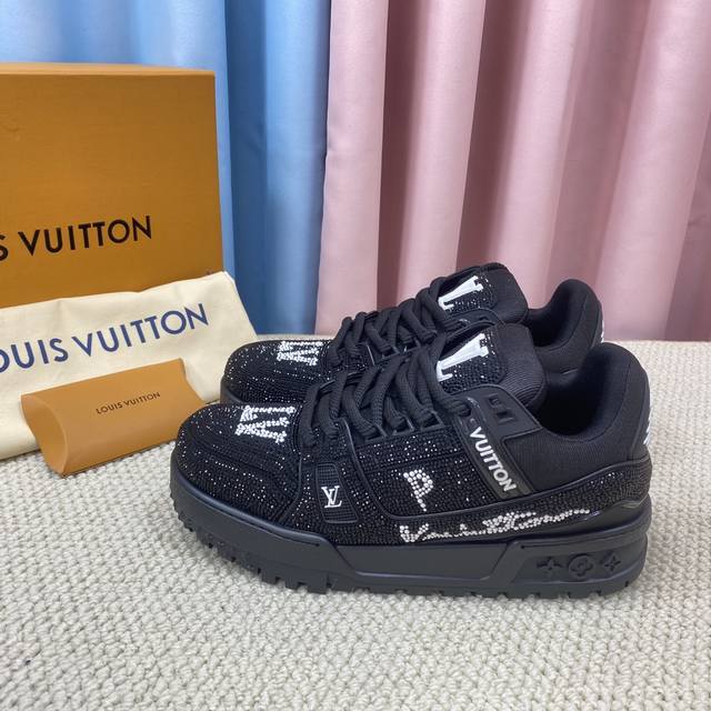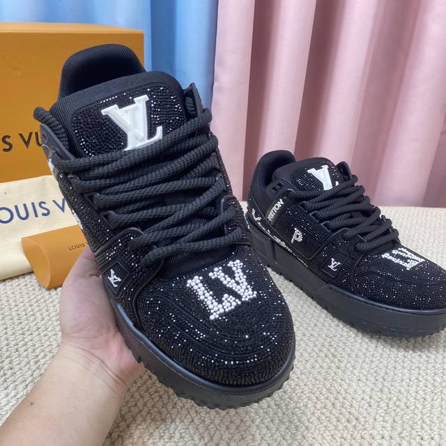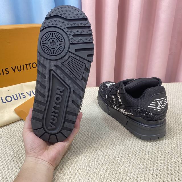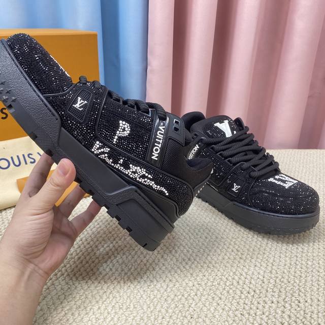 Top-tier version basketball sneakers with rhinestones DDD Louis Vuitto Lv Trainer DDD Sneakers purchased from European reseller for 10,000 RMB DDD A month-long process of disassembling and developing the outsole and upper molds DDD Three sets of molds were even scrapped DDD Only after perfectly adjusting to match the original version DDD A shoe that definitely cost a fortune and was meticulously crafted DDD Designed since Vifgil's arrival DDD This series has been highly favored by many fans every season DDD Pairing it with different socks makes it even more unique DDD Luxury Louis Vuitto rhinestones DDD Original TPU outsole DDD Original packaging DDD Sizes: 39-45 38 46, 4730 Custom orders, no returns or exchanges DDD