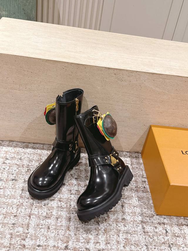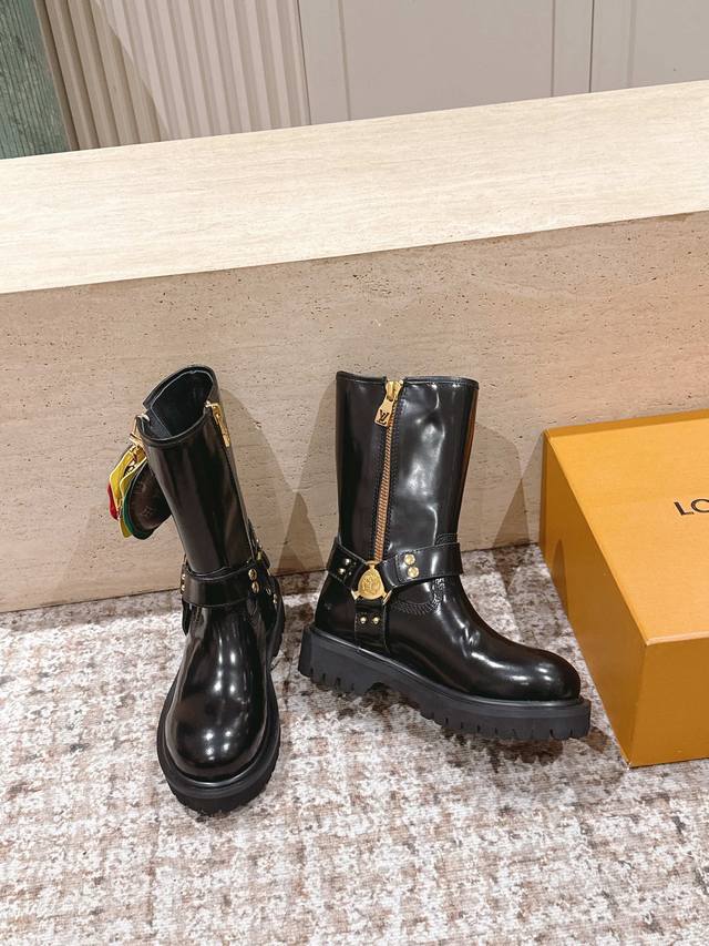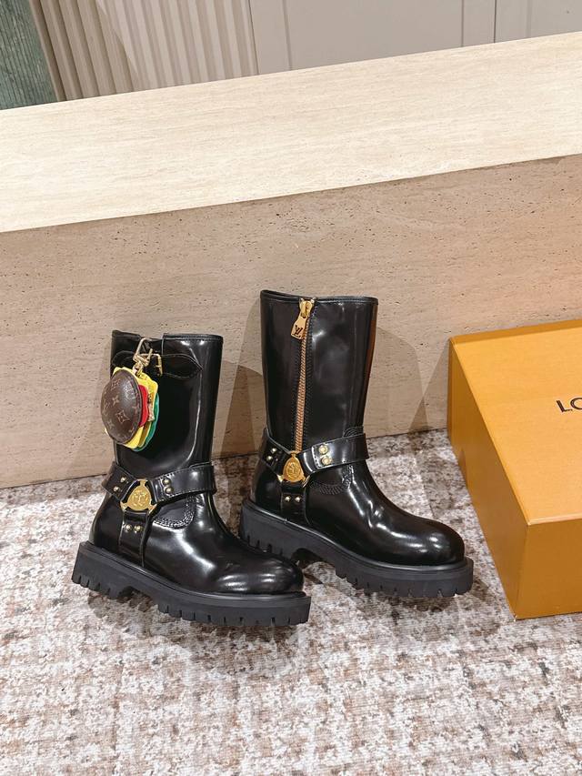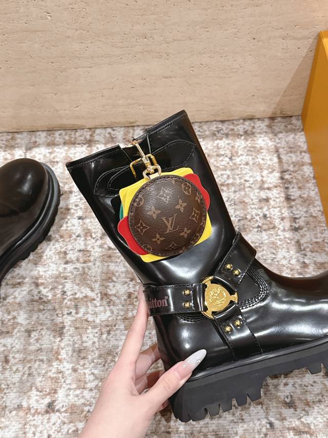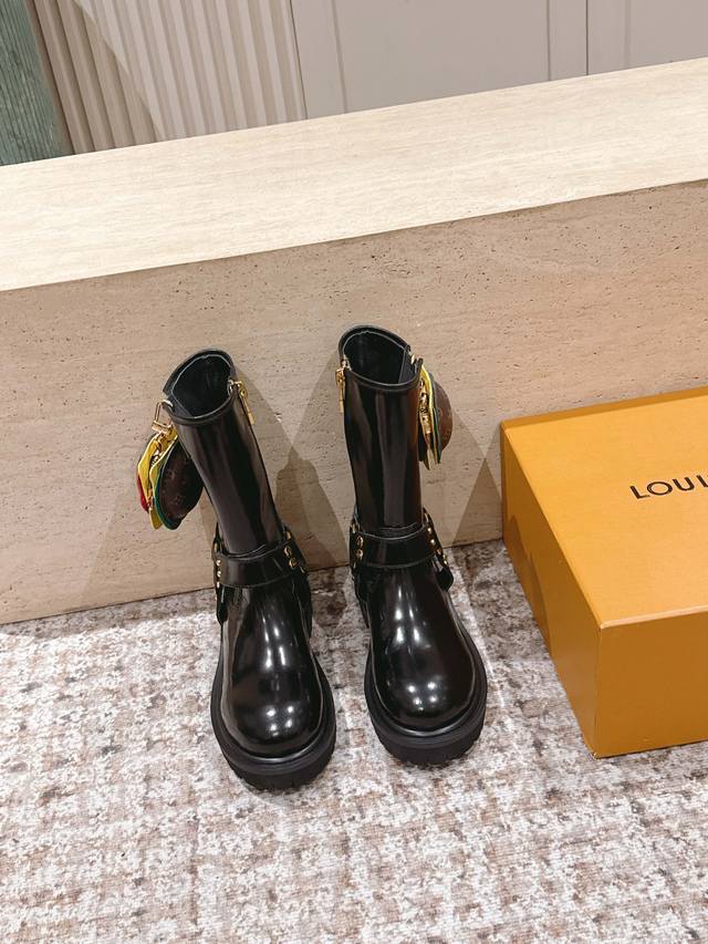 Top-tier version: Couple style, women's: men's plus 10: bag 220 DDD Louis Vuiteeon latest lace-up collaboration Martin boots DDD This platform boot series is very popular this year, the effect of wearing them is amazing, and the trendsetter is absolutely YYDS! DDD Calfskin Lv Remix Derby draws inspiration from classic hiking boots, reimagining their proportions to create a fashionable and avant-garde silhouette. DDD The upper combines thick laces and a hook with engraved letter flowers, with details taken from Louis Vuitton leather goods, especially the letter canvas keybell and the natural leather heel tag with yellow stitching. This shoe features a thick rubber outsole. DDD Upper: Patent calfskin DDD Insole: Sheepskin DDD Outsole: Original mold TPU rubber outsole DDD Heel height: 4cm DDD Size: Women's 35-41, Men's 39-45, 40, 41, 45 (custom made) DDD