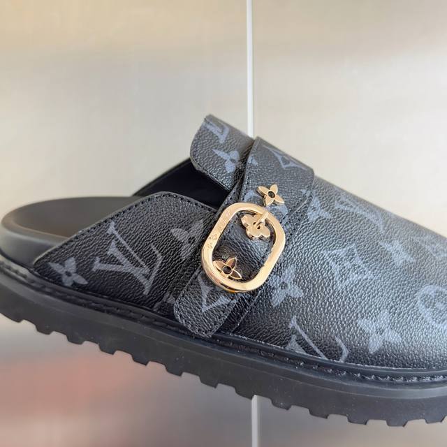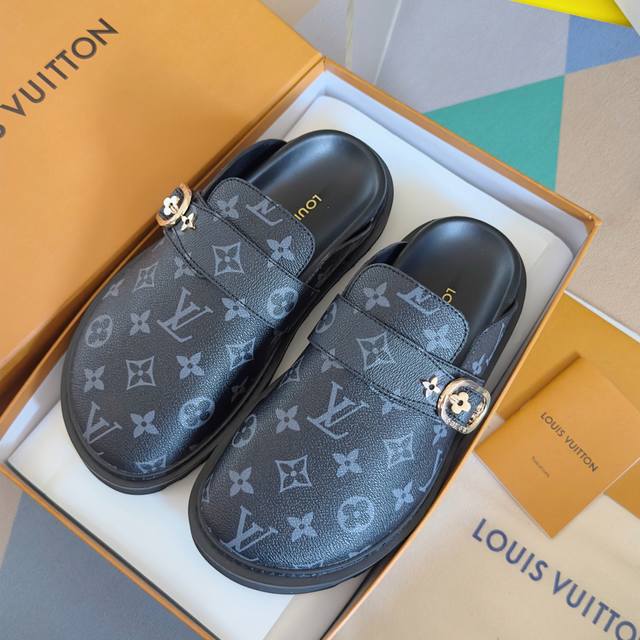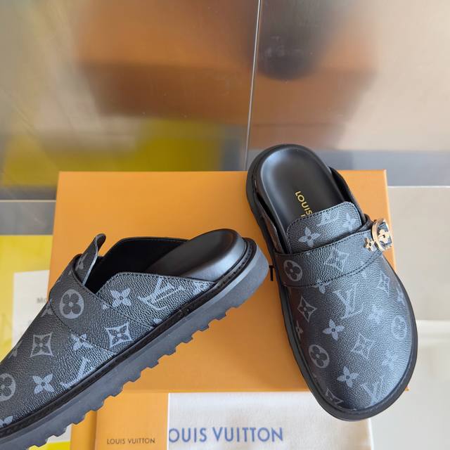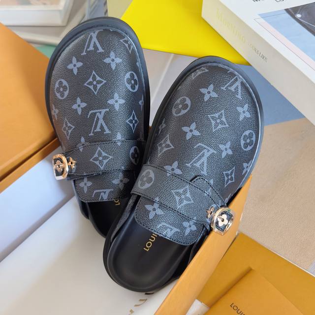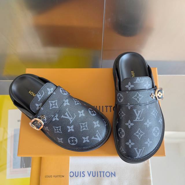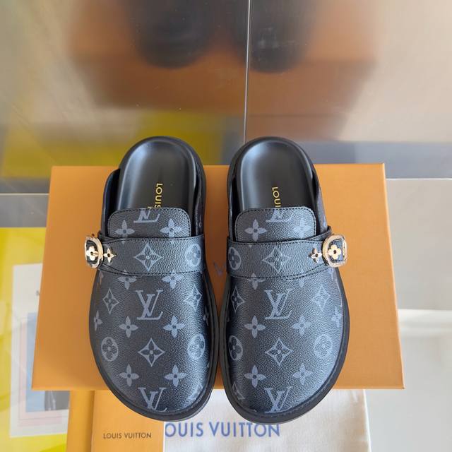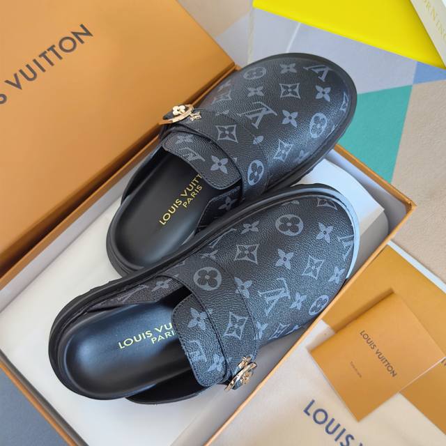 Top-tier version: Couple's style LV Louis Vuitton Cosy Comfort series couple's monogram closed-toe slippers/sandals. LV Cosy Comfort flat sandals for a relaxed everyday look. Monogram canvas upper with adjustable buckle laces, resilient insole and lightweight outsole featuring classic design elements, contrasting stitching outlining the outsole. Comes with exquisite boutique packaging. Material: Original custom imported top-grain cowhide. Lining: Imported soft sheepskin. Sole: Original molded rubber foam material. Sole thickness: 4cm. Size: Women's 35-41, Men's 39-45.