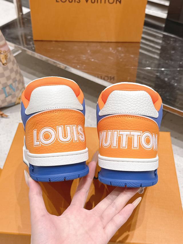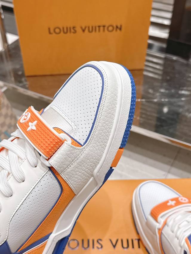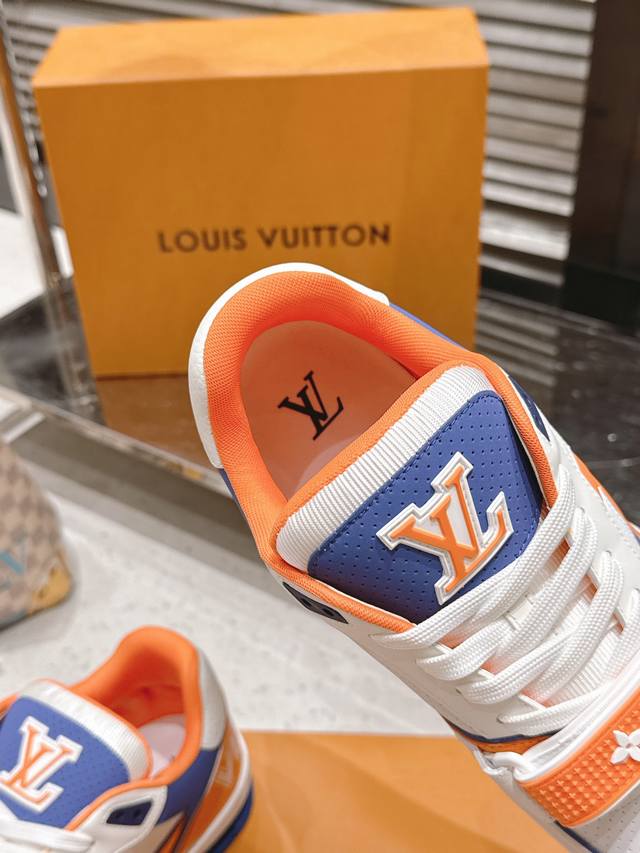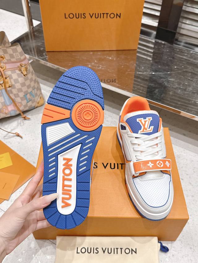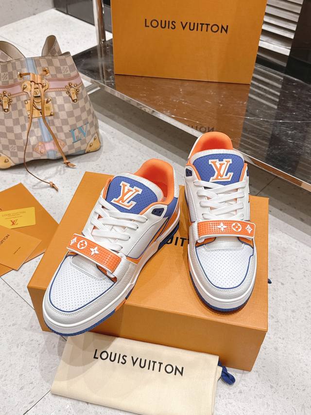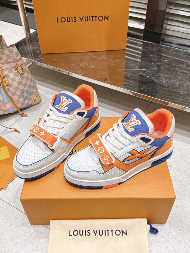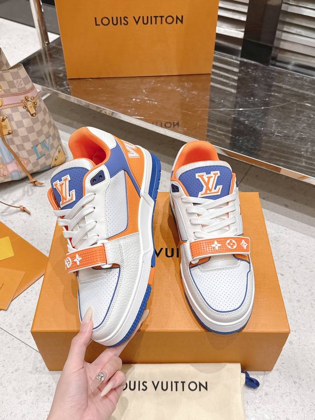 Top-tier version: Factory price (pp): DDD Louis Vuitton Trainer series Velcro four-leaf clover casual sports shoes/skate shoes DDD Original purchase, development and production. This LV Trainer sneaker features smooth cowhide leather with meticulous perforations, cleverly interpreting the inspiration of retro basketball shoes. The intricate upper continues the classic structure, with Monogram flowers and asymmetrical Louis and Vuitton logos adorning the sides and back DDD Delivered with exquisite boutique packaging DDD Material: Original custom imported top-grain cowhide DDD Lining: Original custom breathable mesh lining DDD Outsole: Original molded anti-slip TPU combination outsole DDD Sole thickness: 3cm DDD Size: Men's and women's 35-46 DDD