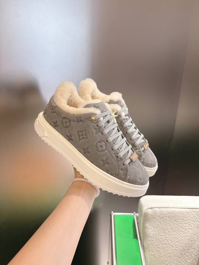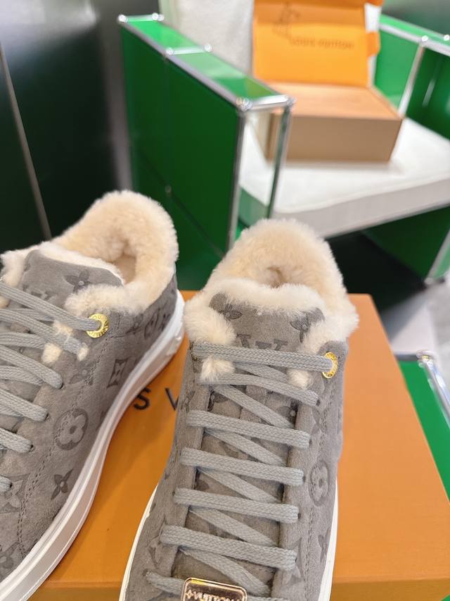 Louis Vuitton Time Out casual sneakers, white sneakers with fur lining