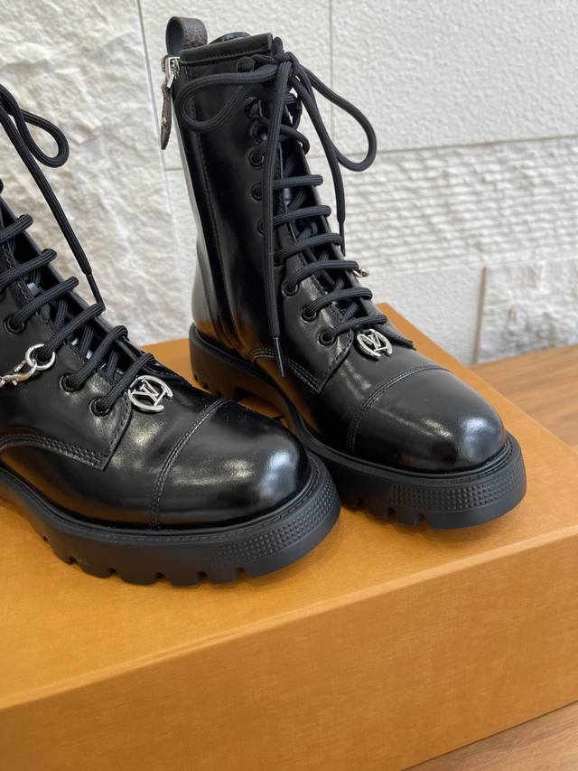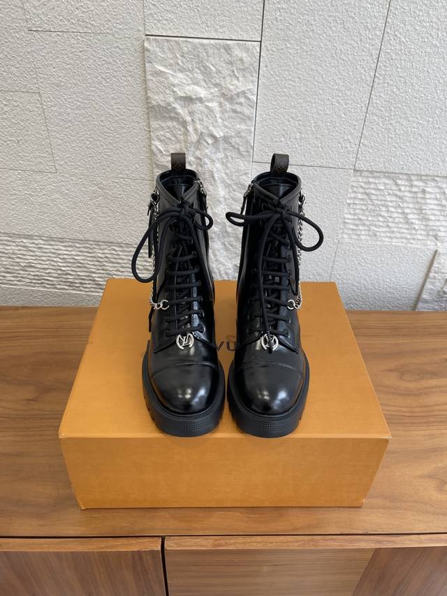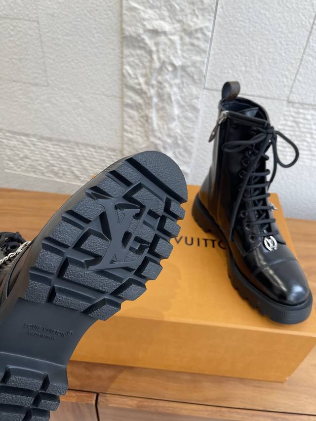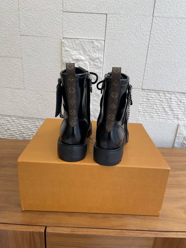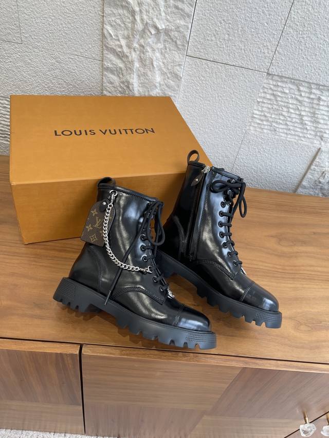 Top-tier version: DDD Louis Vuitton 2025 Fall/Winter New District Ranger Ankle Boots DDD This District Ranger ankle boot embodies military inspiration and Louis Vuitton's travel heritage, featuring a supple calfskin upper adorned with metal chains and a Monogram canvas luggage tag-shaped charm. The Eva outsole boasts a finely textured surface, thick yet lightweight. DDD Material: Original custom imported cowhide DDD Lining: Imported cowhide DDD Outsole: Original molded rubber foam outsole DDD Size: 35-41 40 41 Custom orders are non-refundable DDD