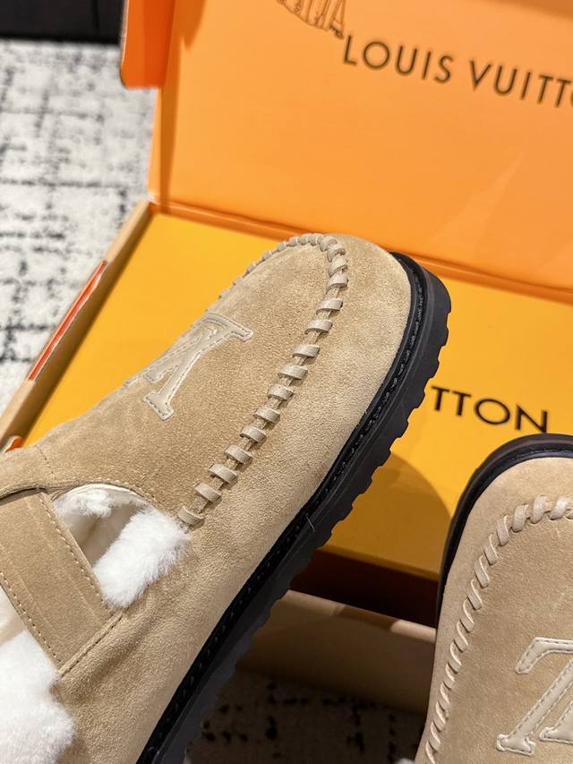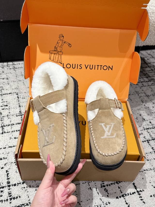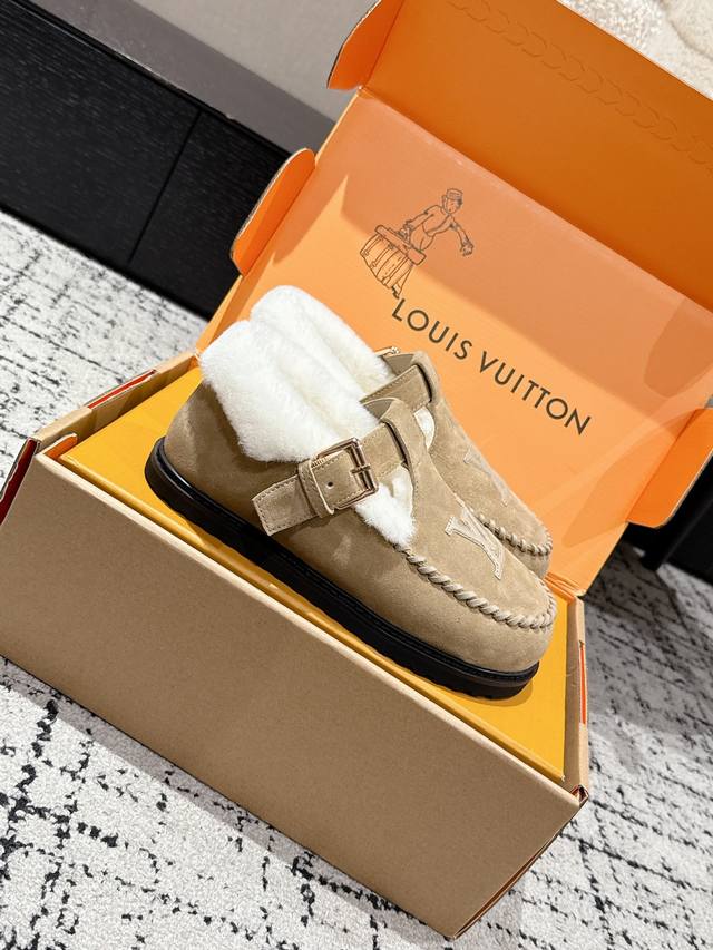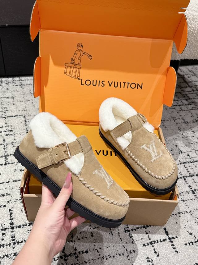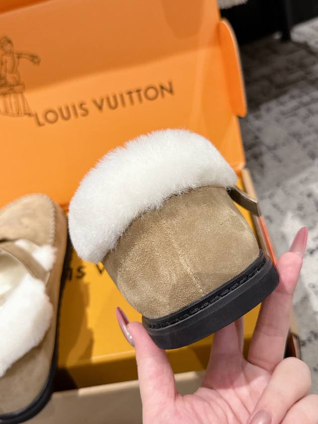 Top-tier version Louis Vuitton 25 Colorado series plush Mary Jane shoes. Original purchase and re-production. These Colorado plush Mary Jane shoes feature suede cowhide leather for a velvety texture, paired with a soft sheepskin lining. The Lv lettering stitching on the upper and the engraved buckle on the adjustable laces enrich the brand details. A lightweight micro-outsole completes the trendy style. Comes with exquisite boutique packaging. Material: Original imported top-grain cowhide. Lining: Wool. Outsole: Original custom-made non-slip rubber foam outsole. Size: #35-41. 40.41 custom-made.