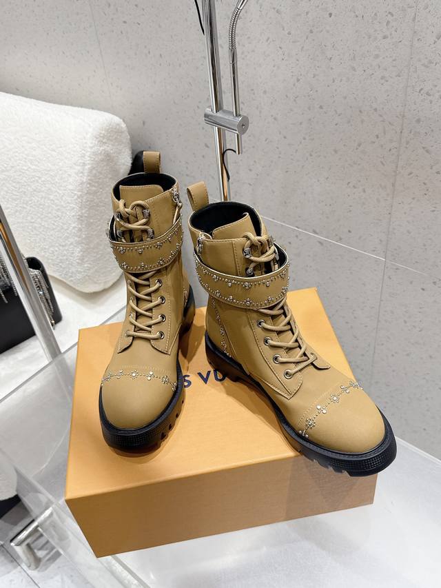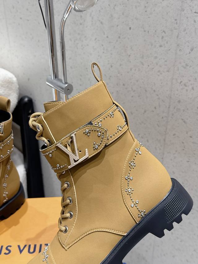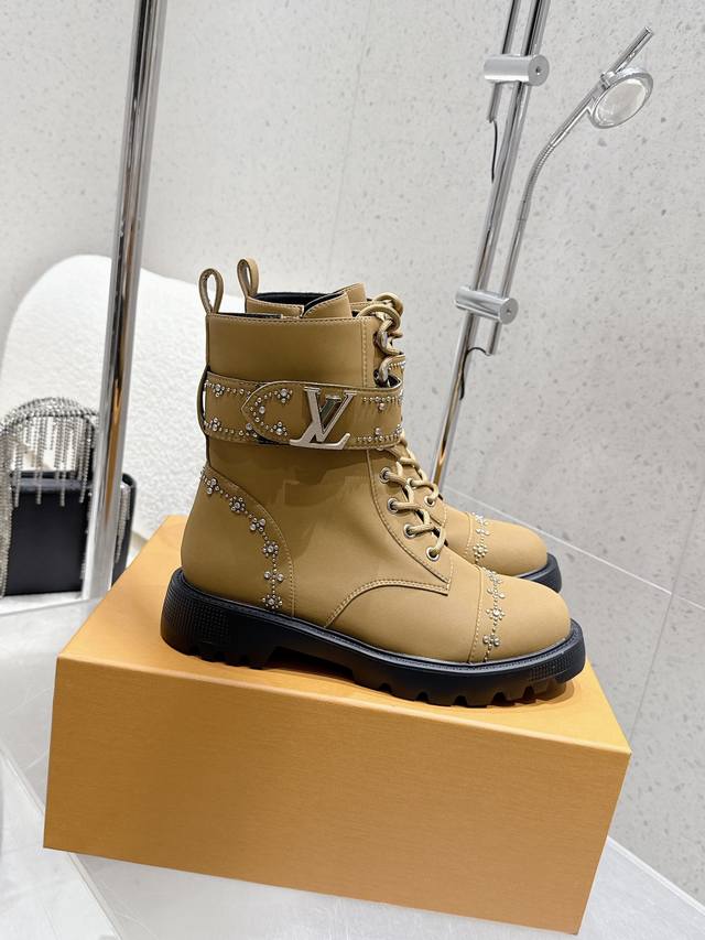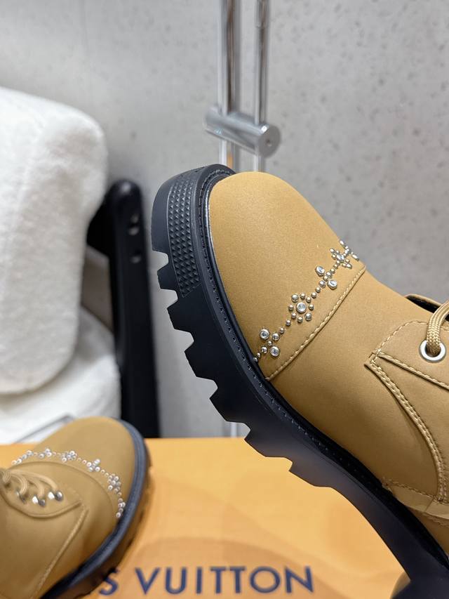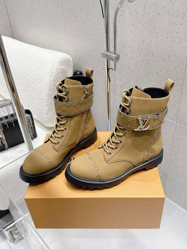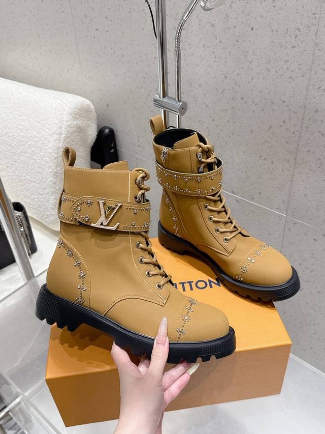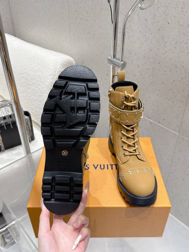 Top-tier version DDD Louis Vuitton 25Ss Fall/Winter New LV Round Toe Lace-up Martin Boots Ankle Boots DDD Upper: Cowhide Leather DDD Insole: Cowhide Leather DDD Sole: Original Mold Custom Rubber Outsole DDD Sizes: Women's 35-39 40 41 Custom made, no returns or exchanges DDD