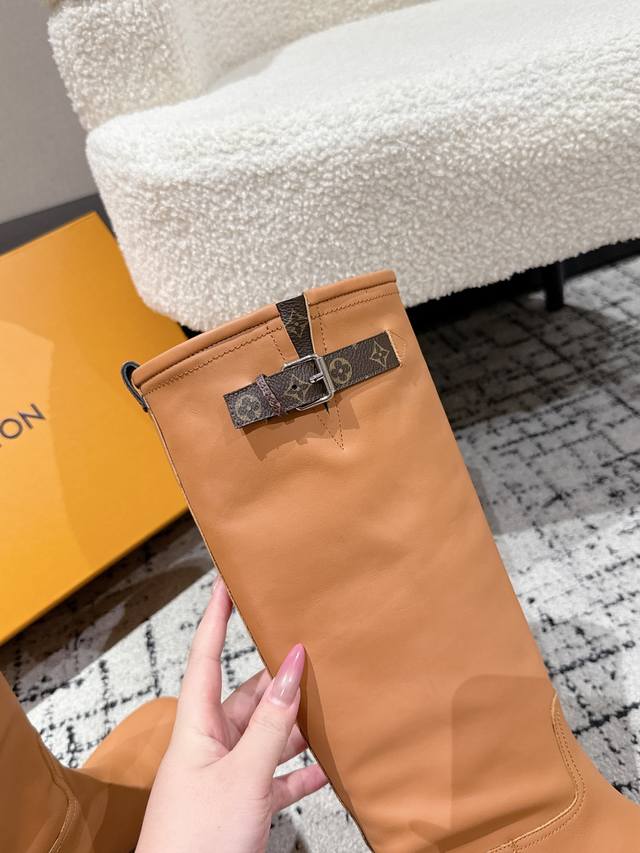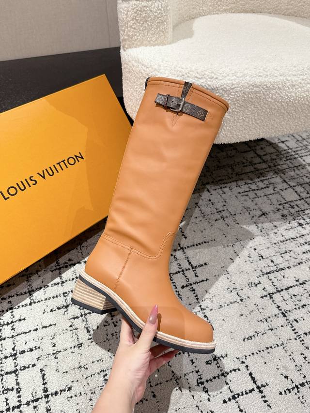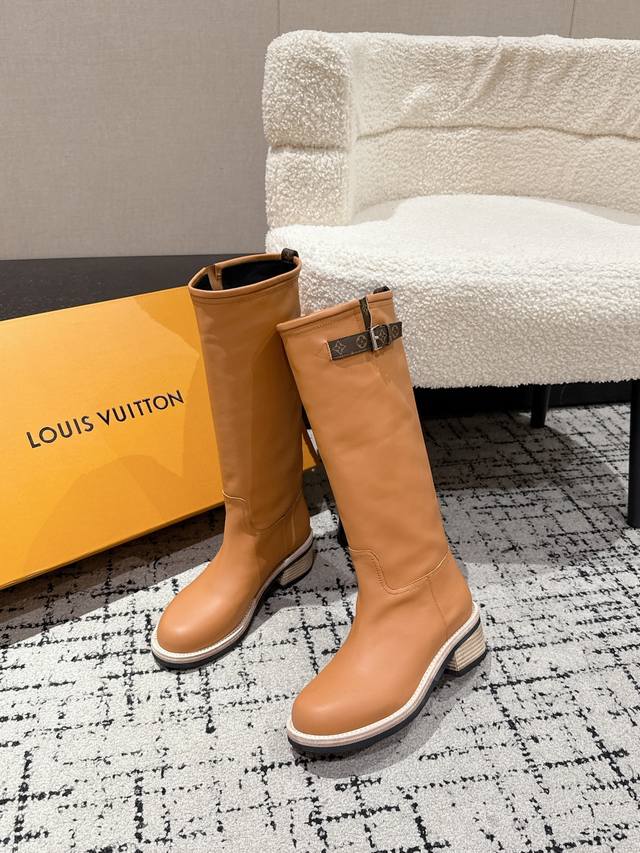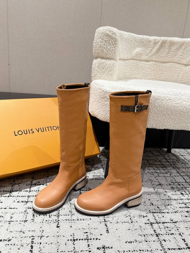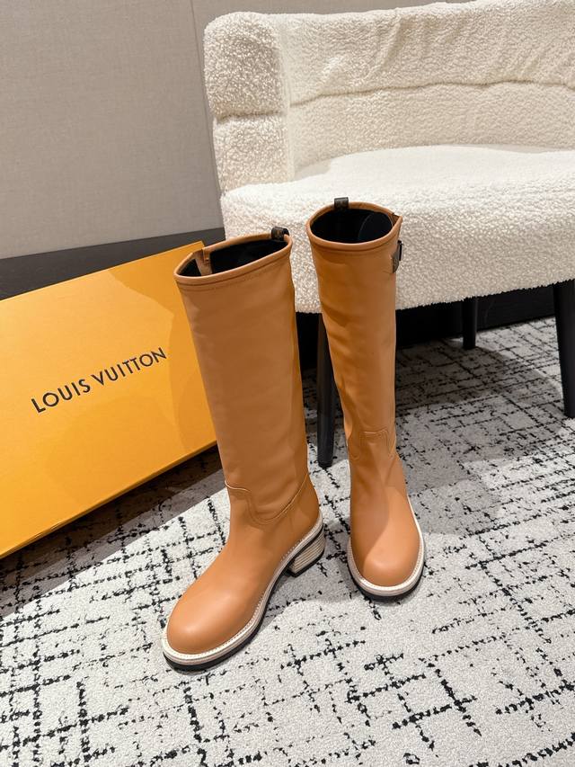 Louis Vuitton Lv 25 Biker Fall/Winter New High-top Boots Chunky Heel Slip-on Straight Long Boots Platform Riding Boots
