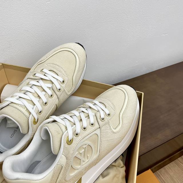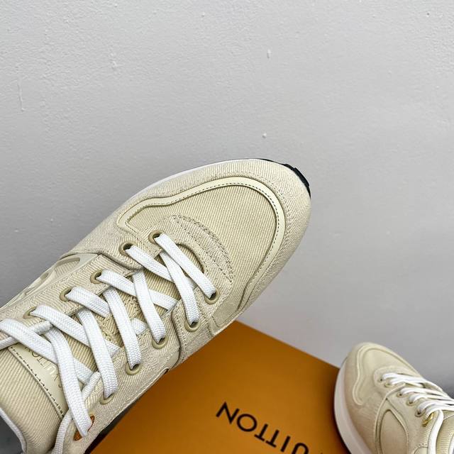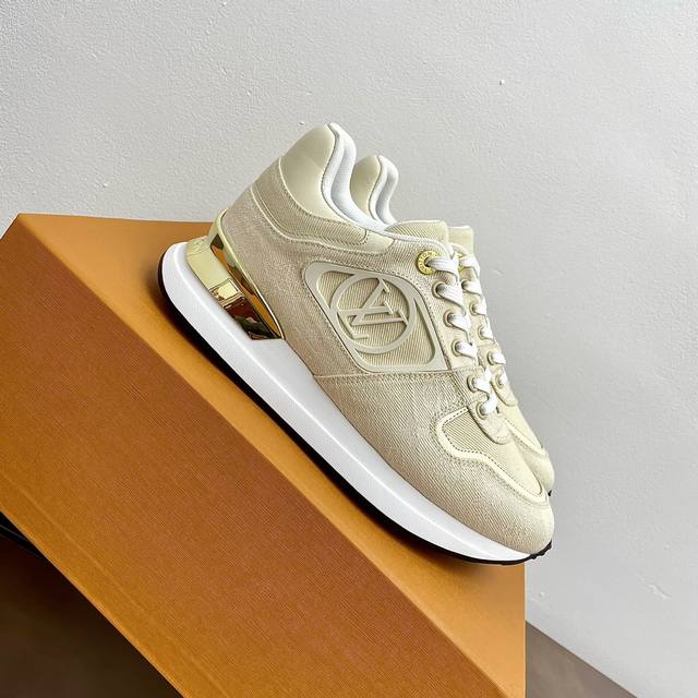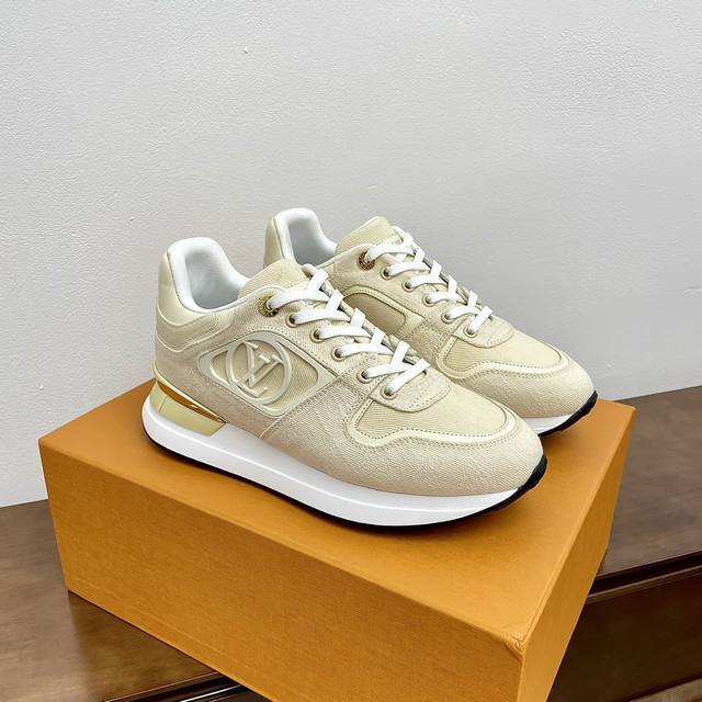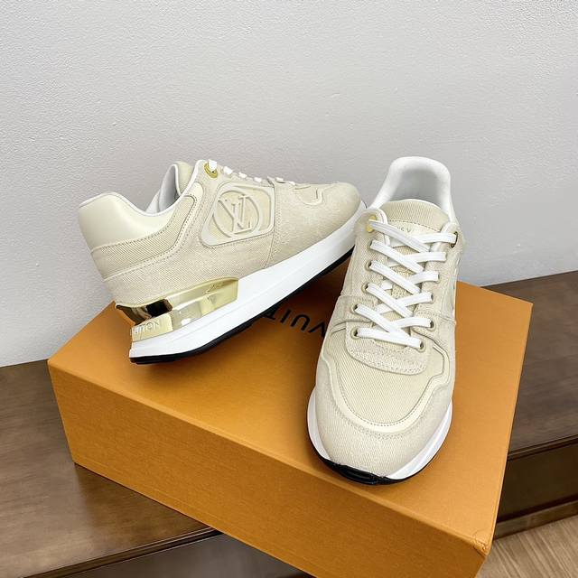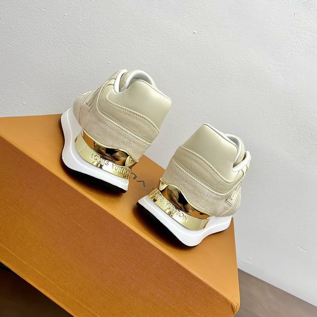 Top-tier version. Louis Vuitton (LV) Neo Run Away casual sneakers. Original purchase and development. This Neo Run Away sneaker upgrades the brand's classic Run Away sneaker with two-tone cowhide leather, continuing the running shoe inspiration with clean lines. Wedge outsole, LV lettering on the side, and patterned lace clips at the back create meticulous details. Comes with exquisite boutique packaging. Material: Original custom imported top-grain cowhide. Lining: Custom imported breathable mesh. Outsole: Original molded ultra-lightweight foam + TPU material. Sole thickness: 5cm. Size: Women's 35-41, 40, 41 (custom made).