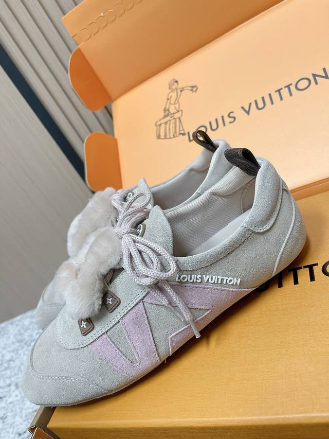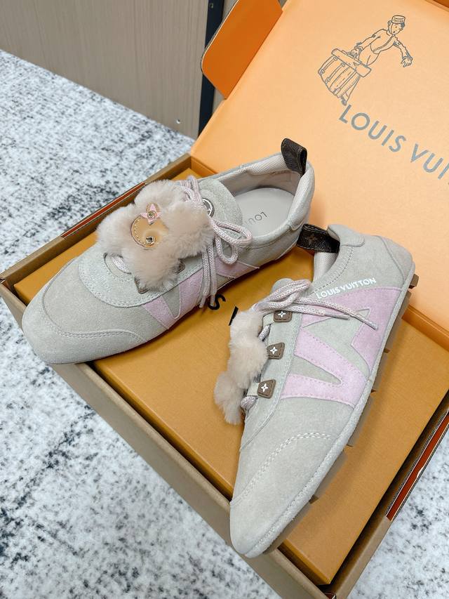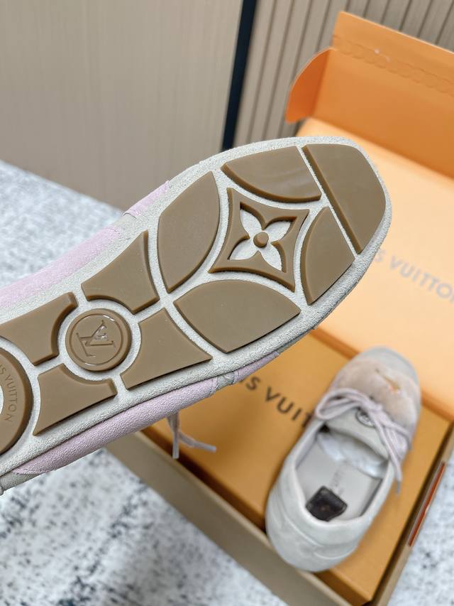 Top-tier version: DDD Louis Vuitton Sneakerina series ballet flats, German training shoes, flats, casual shoes DDD This Louis Vuitton Sneakerina ballet flat features a Sacchetto construction crafted from supple suede cowhide, showcasing a beautiful fusion of athletic shoes and ballet flats. The puffy tags on the laces reflect the playful spirit of the brand's mascot, Vivienne. The lightweight injection-molded TPU outsole incorporates iconic brand details. DDD Sizes: 35-40 40 custom-made DDD